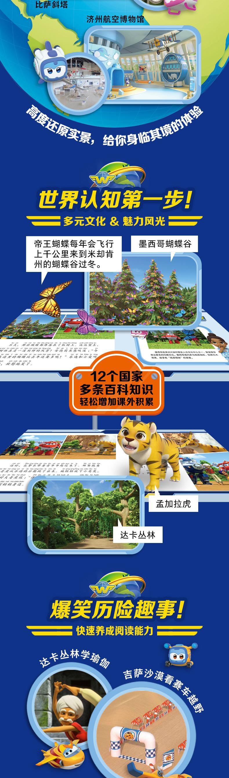"Las aventuras del Hombre Volador alrededor del mundo, temporada 9" es un libro ilustrado cuyo tema es "viajar alrededor del mundo y comprenderlo". El conjunto completo consta de 6 volúmenes, y las 12 historias son adaptaciones de la nueva serie animada de la temporada 9 de Hombre Volador. Los jóvenes lectores podrán viajar a diversos países con Hombre Volador para descubrir los encantadores paisajes, la arquitectura, las costumbres y la cultura de diversos lugares, ampliar sus conocimientos extracurriculares y ampliar sus horizontes. En la historia de esta temporada, los hombres voladores volaron a Bangladesh, Italia, Suiza, México, Islandia y otros países. En estos maravillosos países, los hombres voladores vivieron aventuras maravillosas una y otra vez. A veces surcaron el cielo para proteger mariposas, y otras veces se adentraron en la selva para visitar tigres. Los jóvenes lectores podrán disfrutar de hermosos paisajes como la mágica Torre Inclinada de Pisa, las imponentes montañas nevadas, la misteriosa selva de Bengala, etc., en el libro, y también podrán ver animales maravillosos como tigres de Bengala, mariposas monarca americanas e insectos palo costarricenses. Además de las fascinantes historias, la sección "Viaje Global" al final del libro también presenta en detalle las características climáticas, la arquitectura, las costumbres y la cultura, la gastronomía, la topografía y los accidentes geográficos de varios países. Tras leer este libro, los jóvenes lectores comprenderán a fondo la calle más empinada del mundo, el museo de aviación, el gran salón del automóvil y mucho más. Todo el conjunto de libros está marcado en pinyin, y las imágenes son capturas de pantalla de alta definición de la animación original, con un toque de escena.
