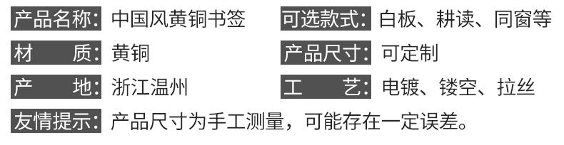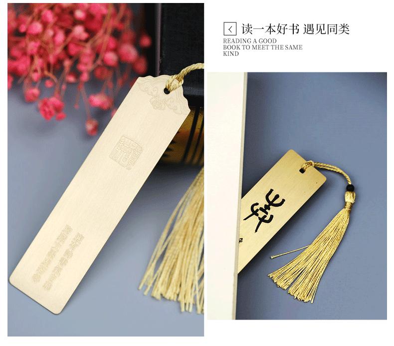 Marcador de libros de latón con diseño de estilo chino, marcapáginas de metal retro, regalo creativo para negocios, marcapáginas creativo con logotipo