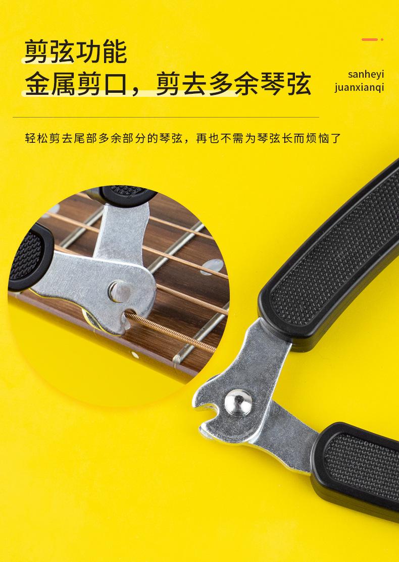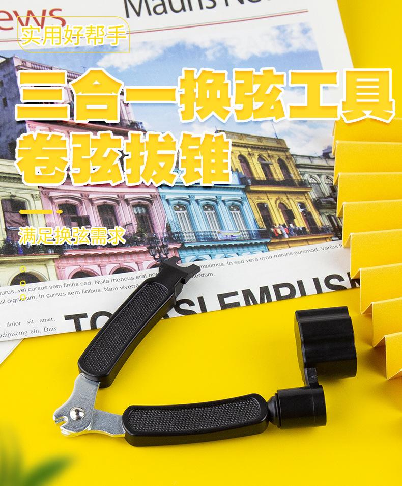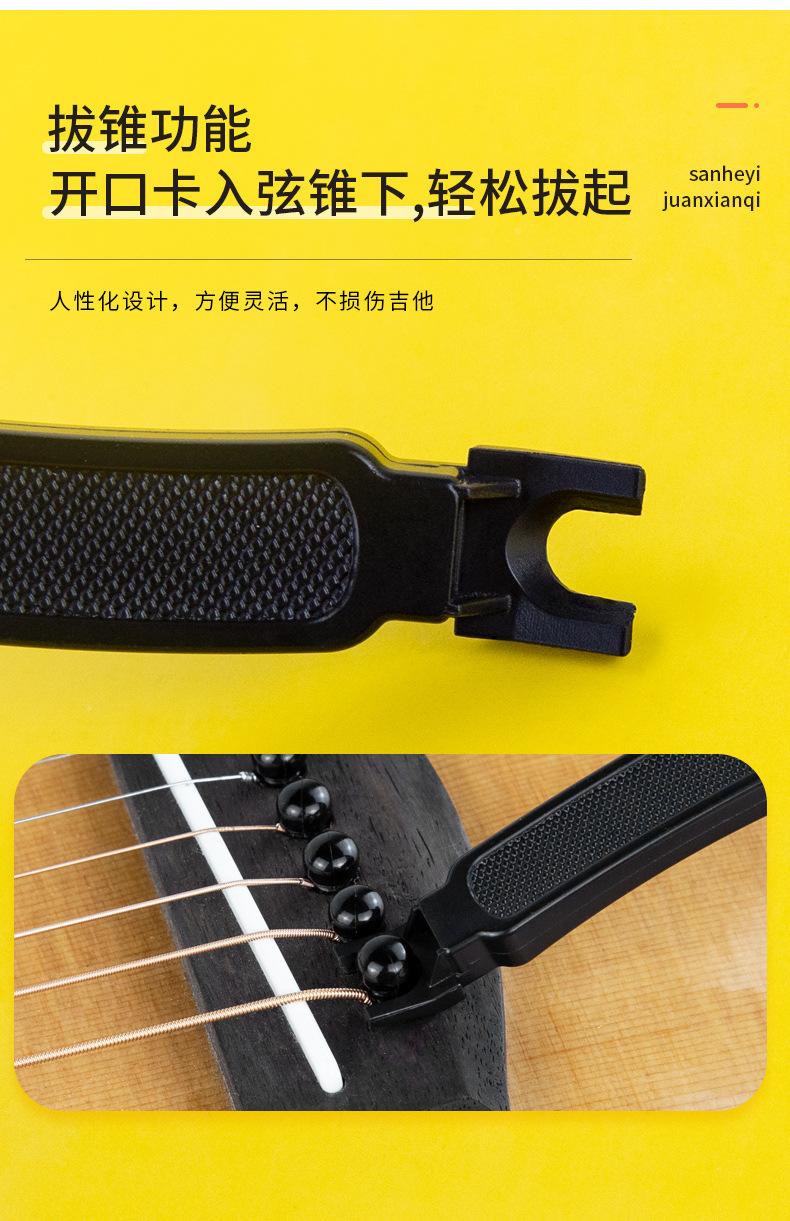 Herramienta para cambiar cuerdas de guitarra, tres en uno, cambiador de cuerdas para guitarra acústica, herramienta de bobinado, cortador de cuerdas, levantador de clavos, extractor cónico