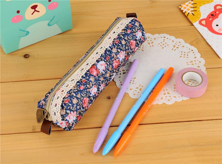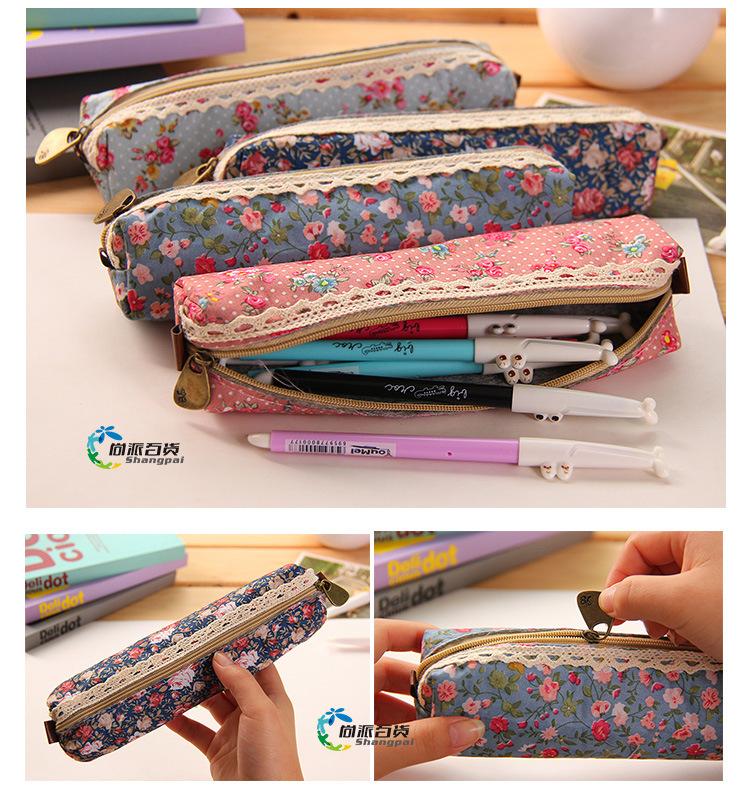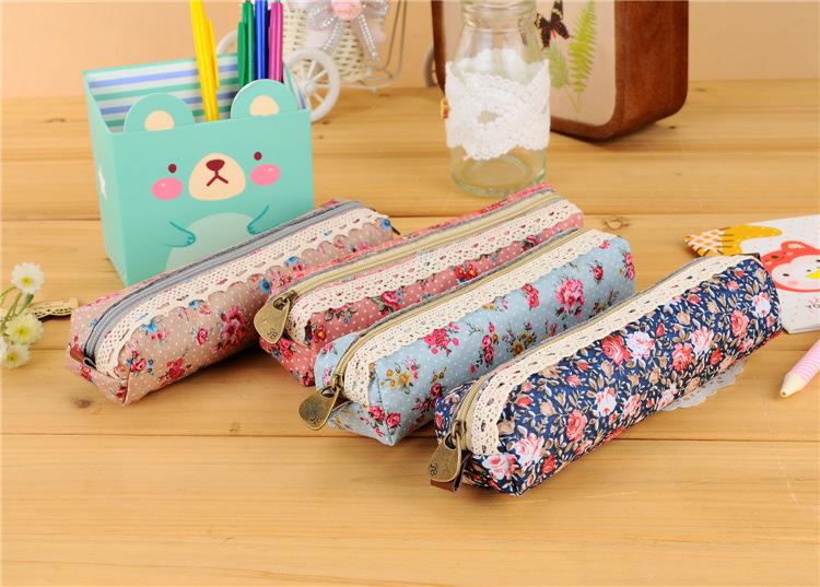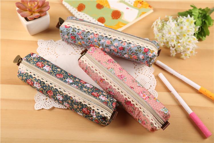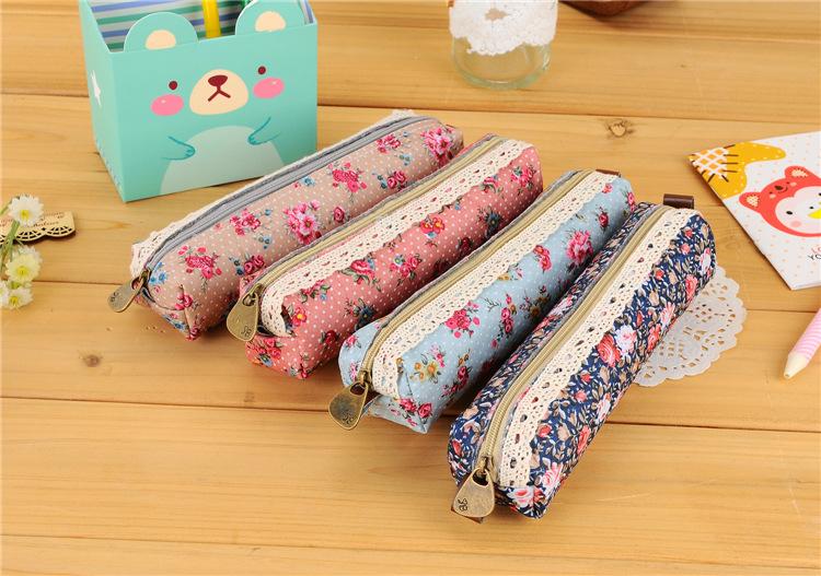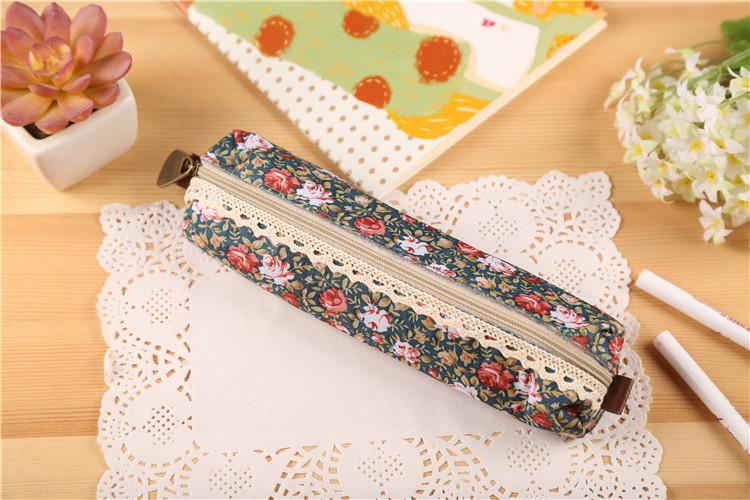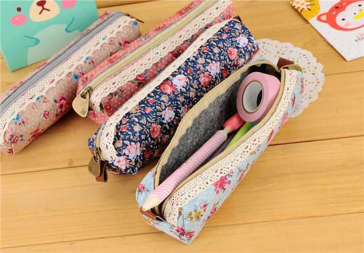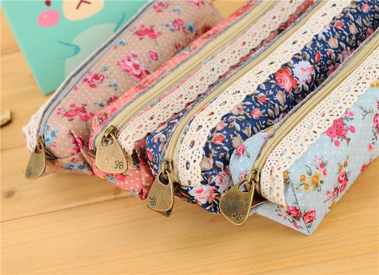 Bolsa de Papelería Pequeña Fresca y Elegante Estilo Bosque Elegante Simple Estuche de Papelería Lunares Floral Estuche para Lápices