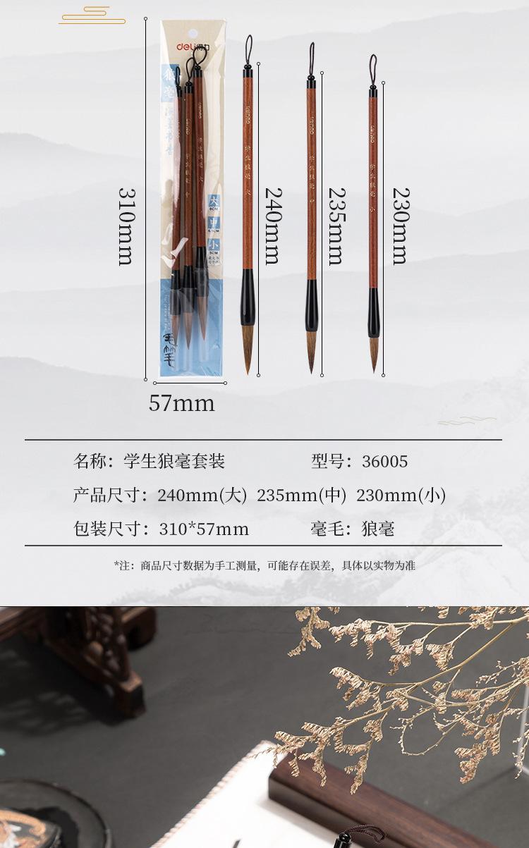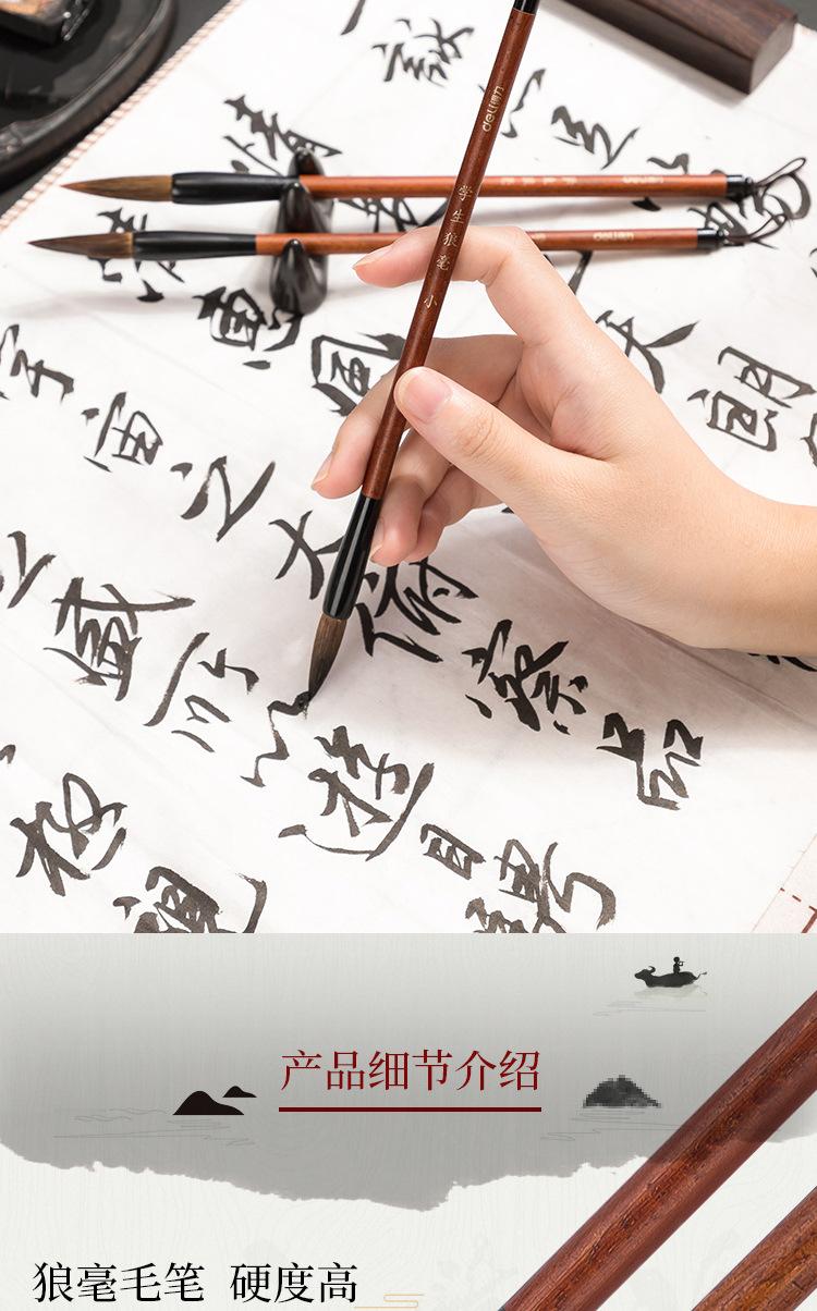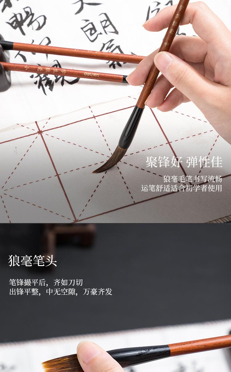 Estuche grande y pequeño de papelería Deli, pincel para estudiantes, pincel de lobo, traje de caligrafía, pincel de pintura china, tinta al por mayor