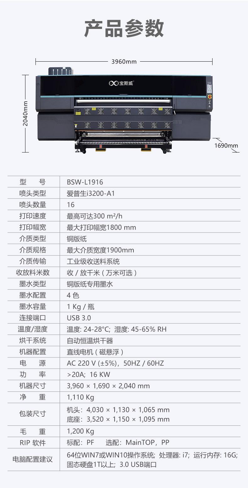 [Deposit] BSW-L1916 coated paper printer, Baosiwei ink, Support proofing, one-year warranty, life-long mainten...