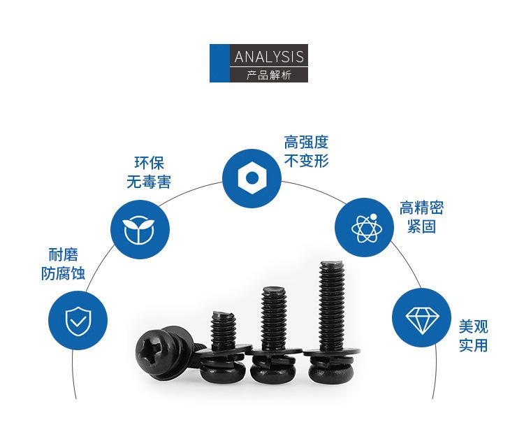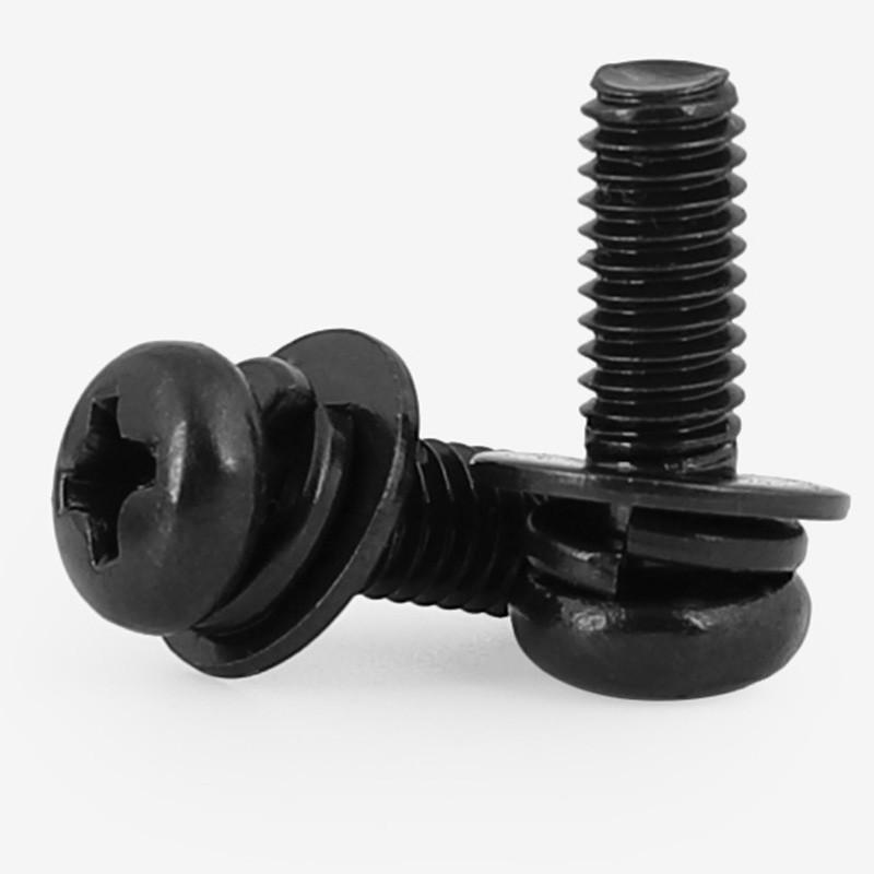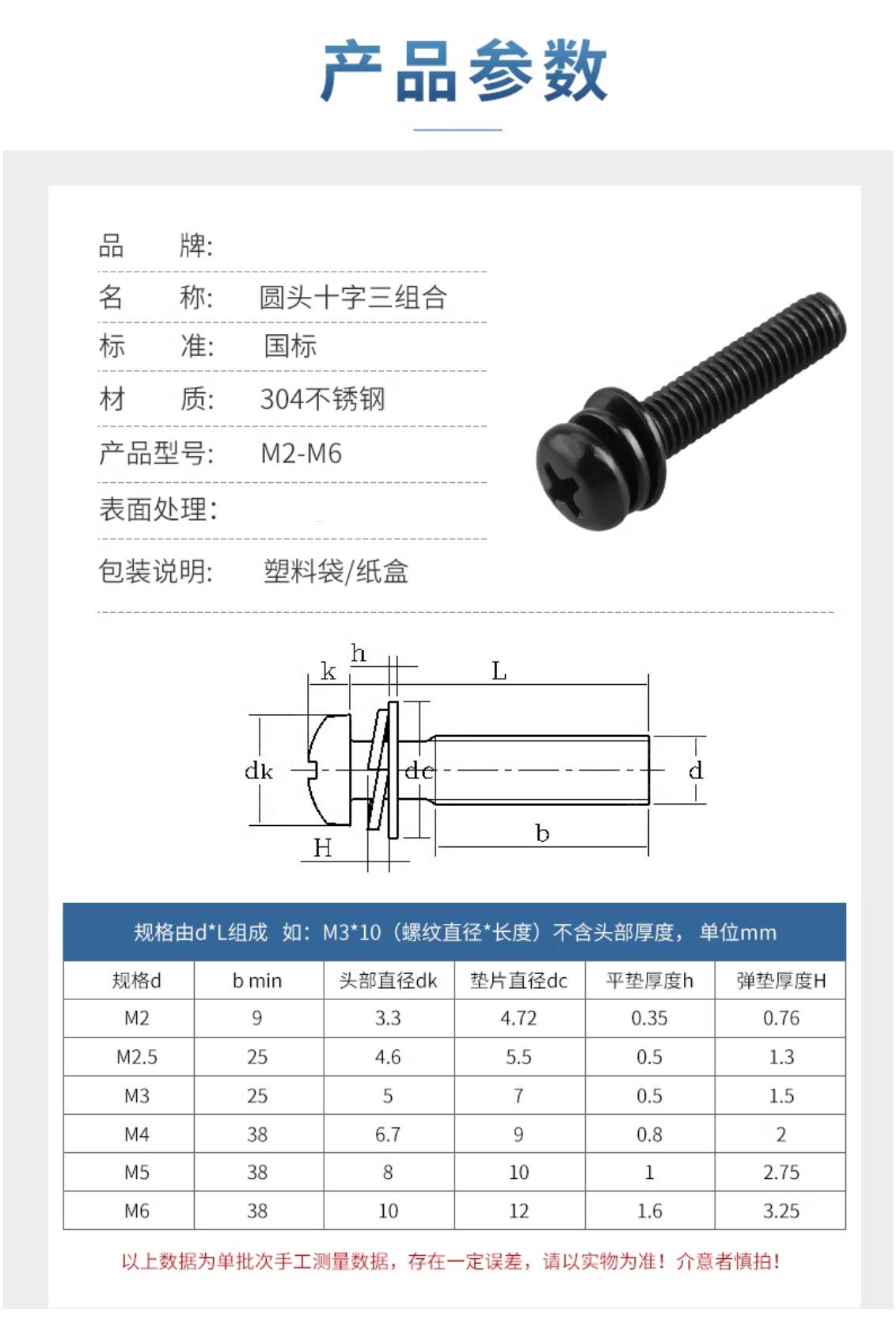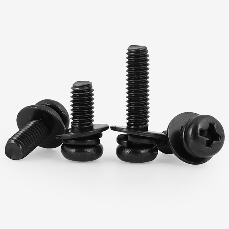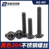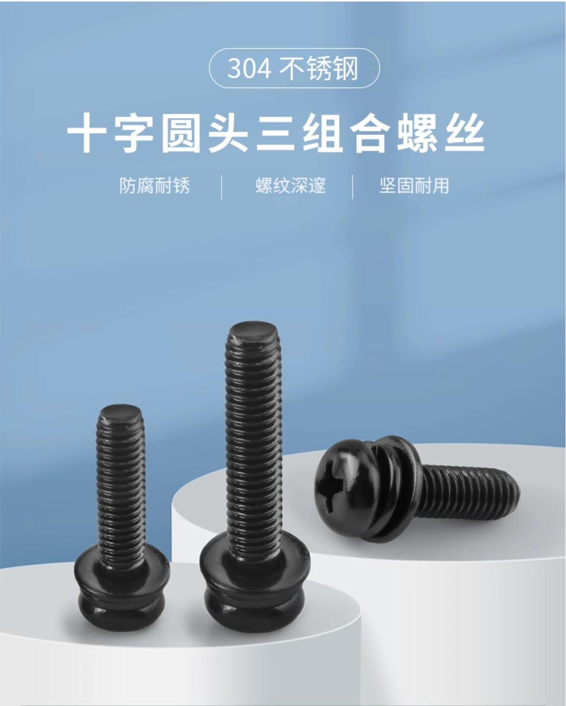 Tornillo de cabeza redonda cruzada de tres combinaciones, tornillo de almohadilla de resorte plana de cabeza plana, M2M2.5M3M4M5M6, de acero inoxidable 304 negro