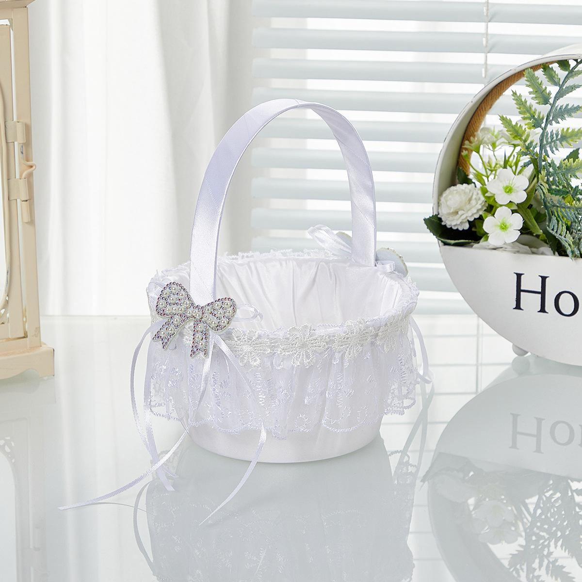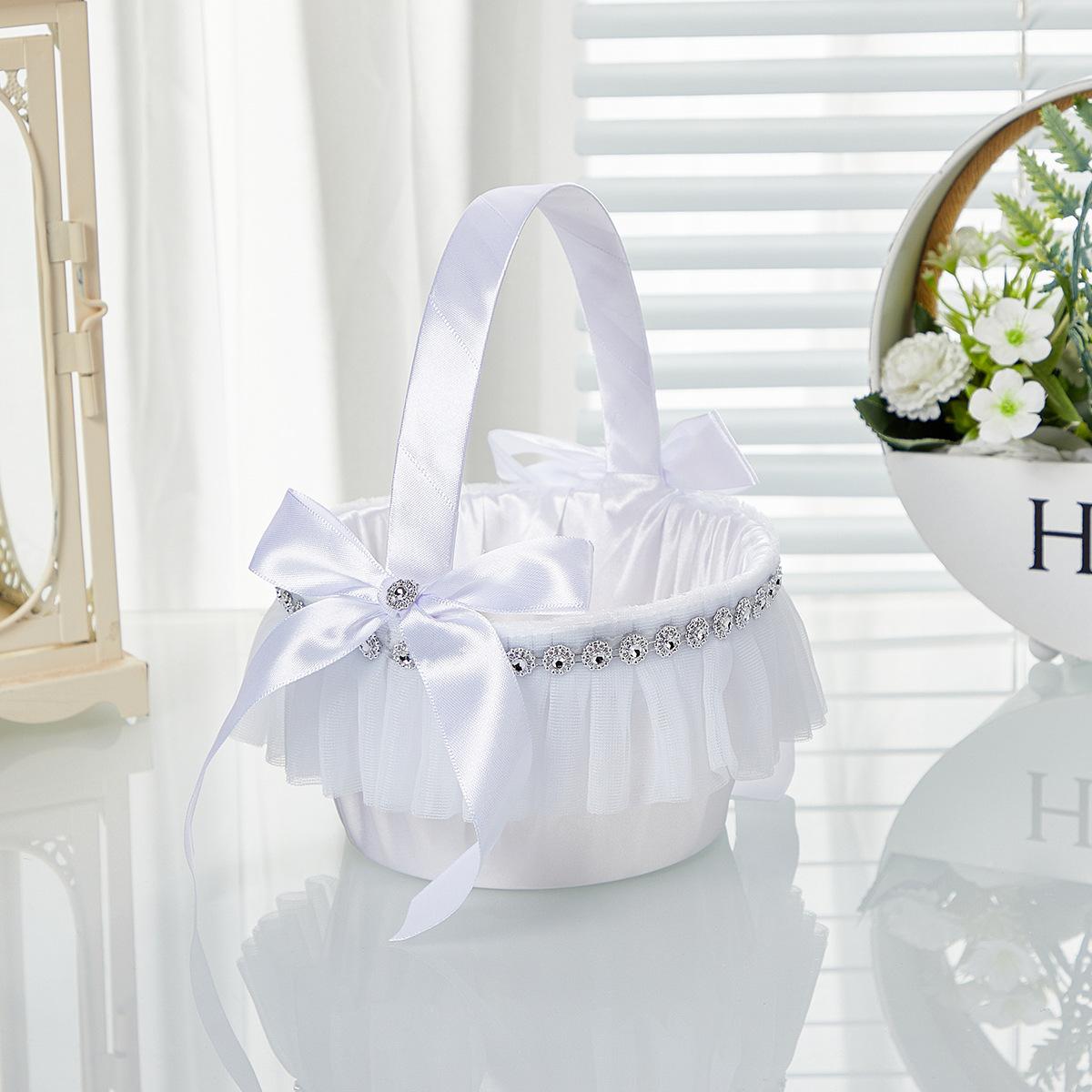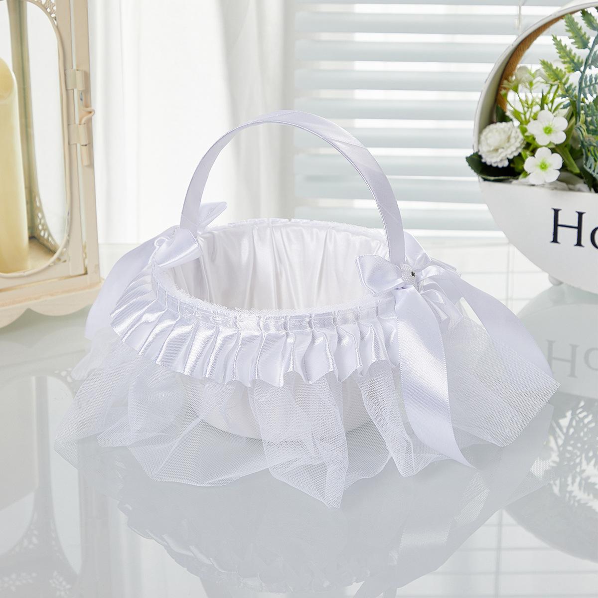 Suministros de boda de estilo occidental, cesta de flores para boda, mano de novia y dama de honor con cesta de flores, lazo de temperamento blanco, fábrica al por mayor