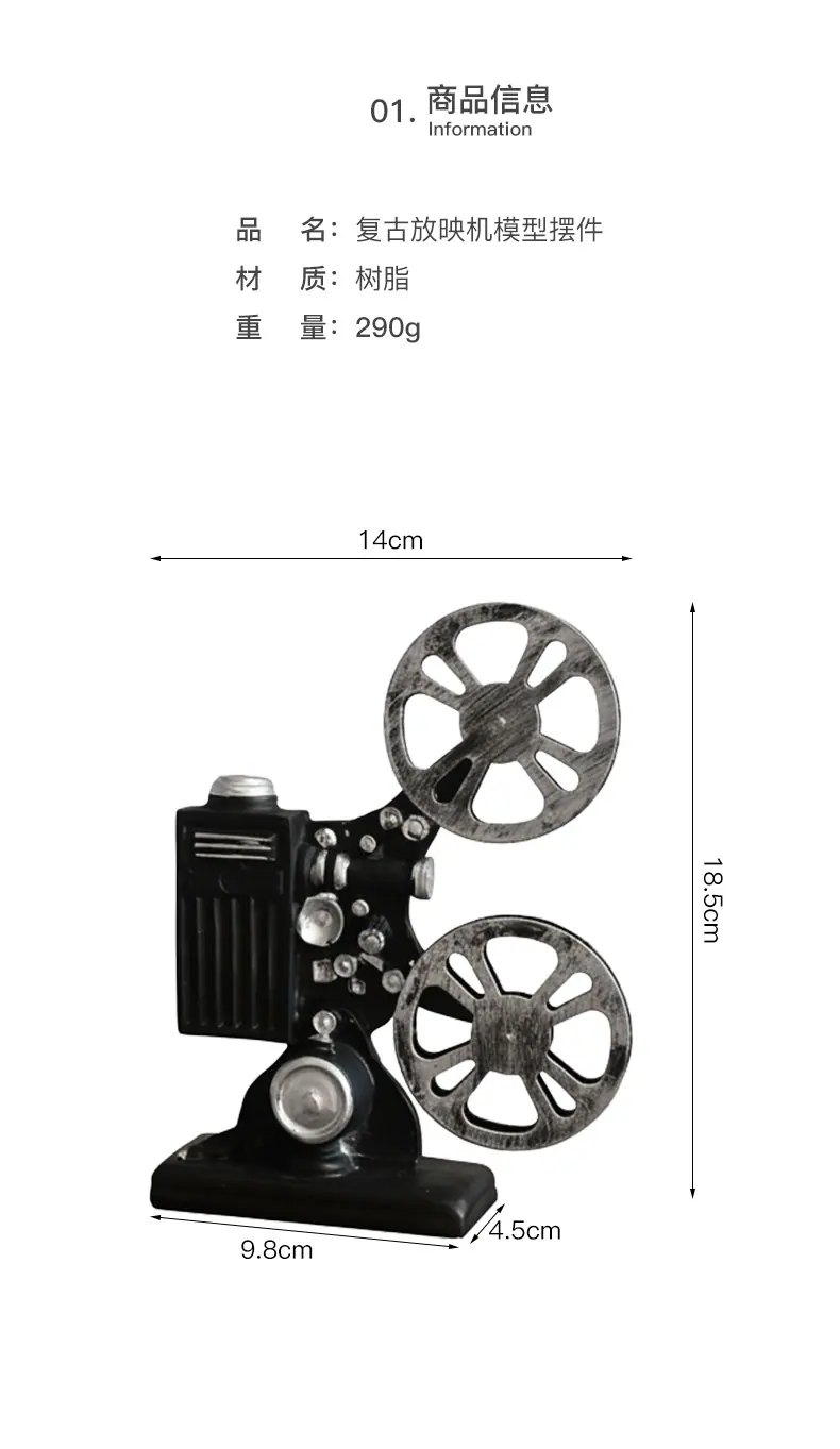 Adornos de modelo de proyector nostálgico retro antiguo, accesorios de fotografía creativos, exhibición de ventanas, decoraciones suaves para interiores