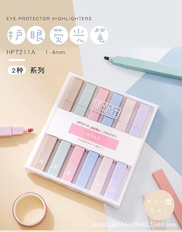 Yimulin - Bolígrafo fluorescente antiestrés, 12 colores, redondo, supersuave, con protección para los ojos, marcador de color |