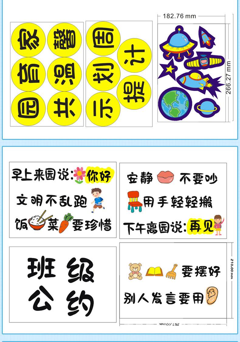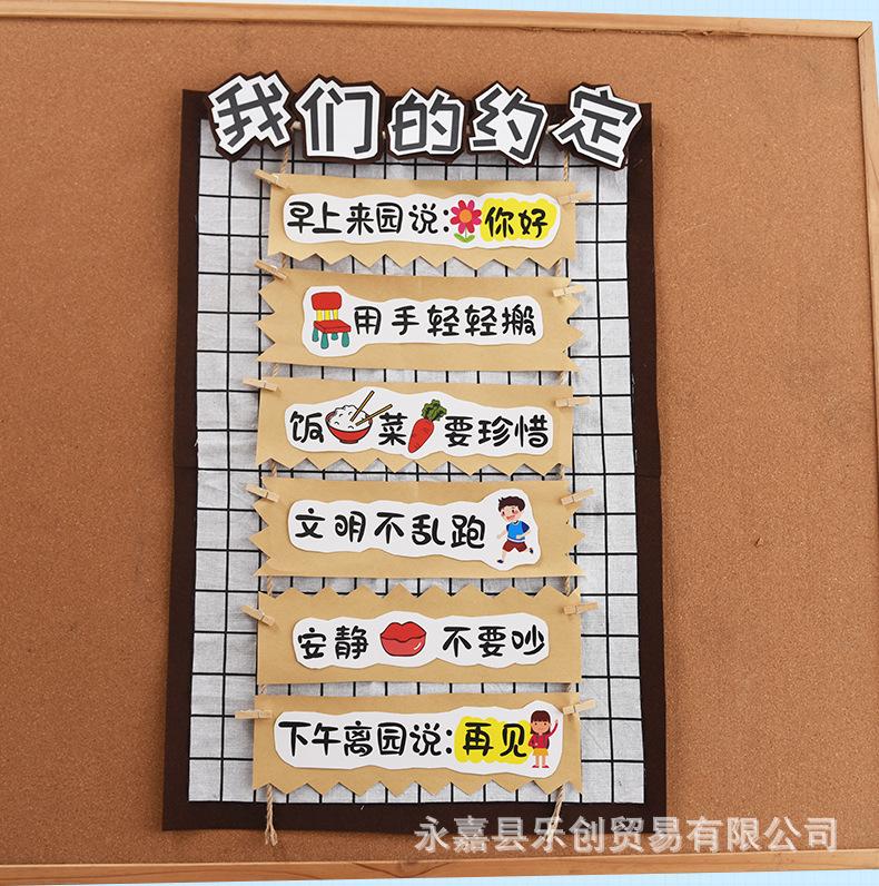 Material de cartón gráfico para niños, tema de dibujos animados, logotipo, patrón de texto, decoración cultural de clase de escuela primaria de jardín de infantes