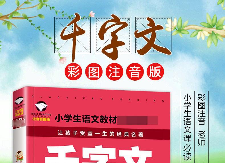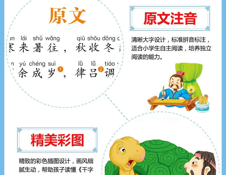 Versión de imagen a color fonética de mil caracteres de la Ilustración tradicional china auténtica para estudiantes de primer, segundo y tercer grado de primaria, lectura extracurricular en chino