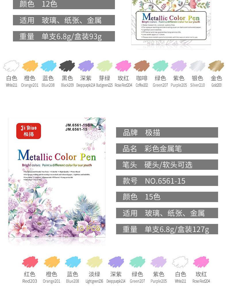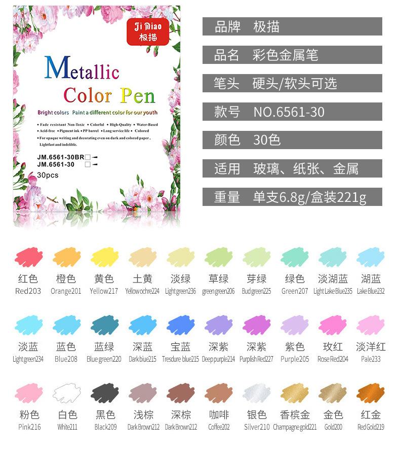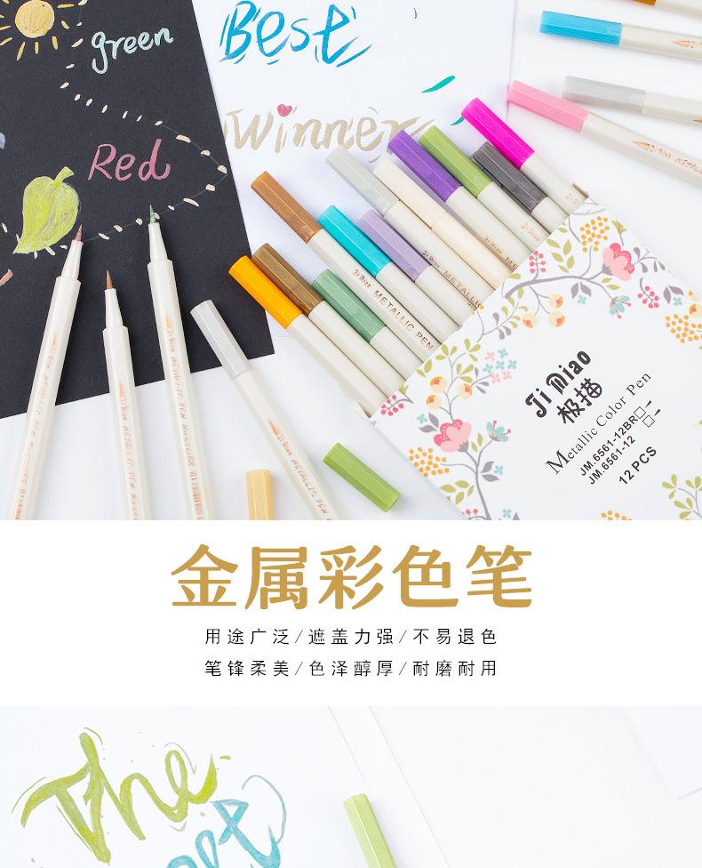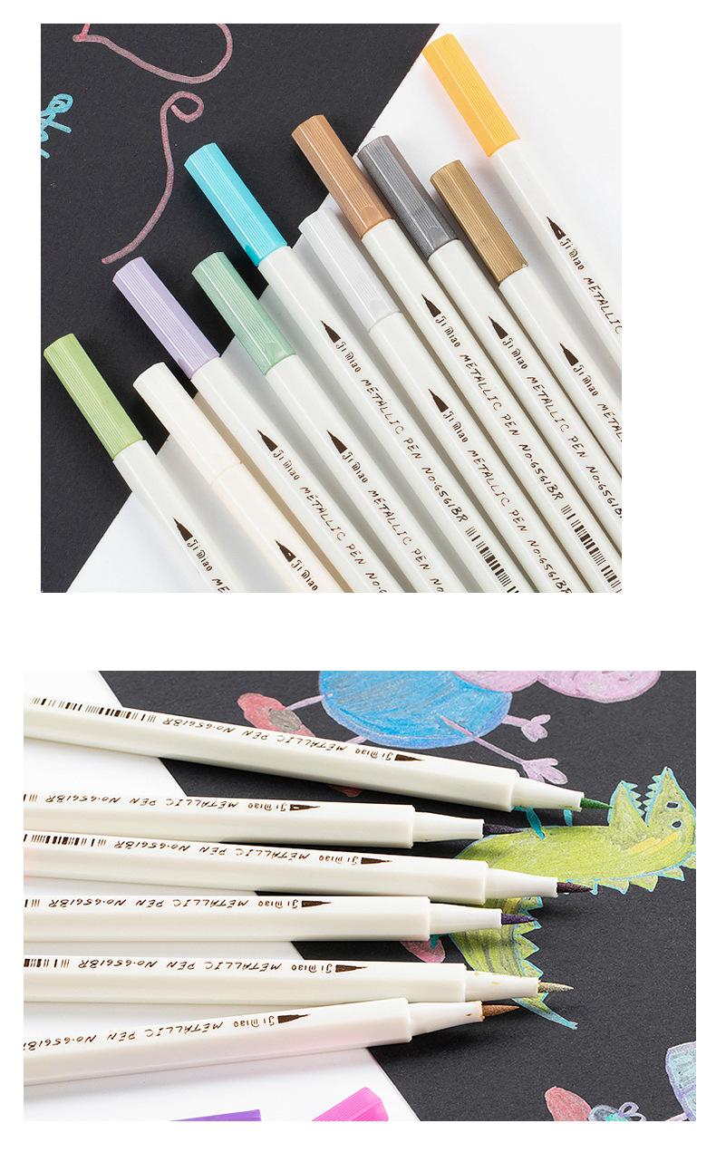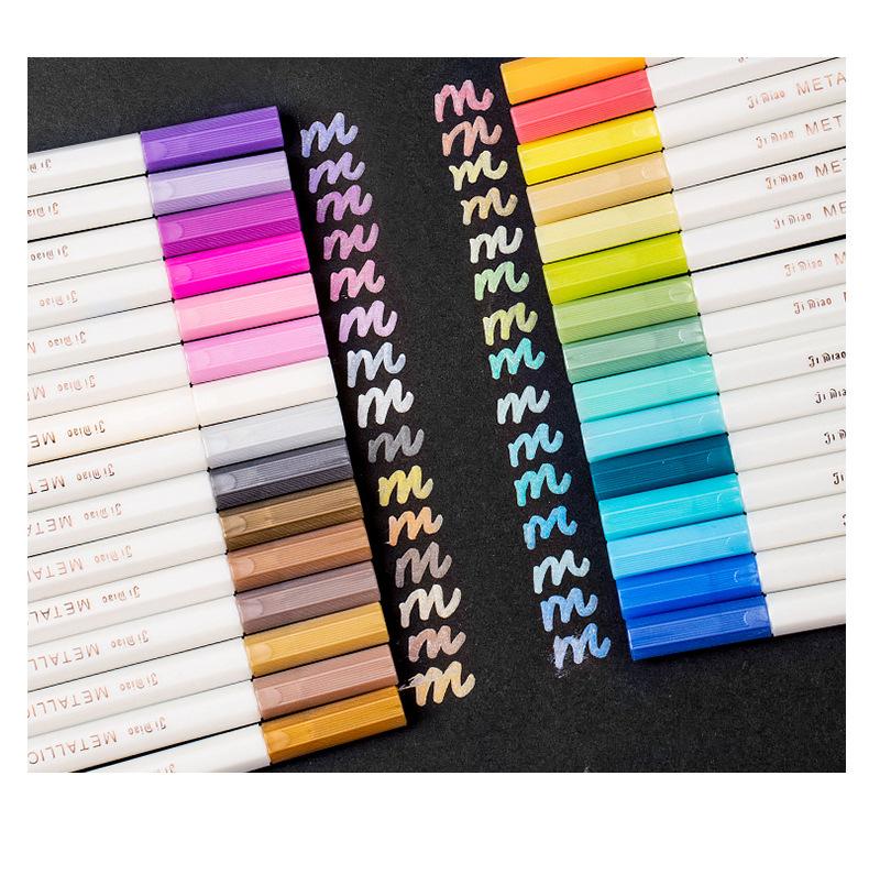 Pluma metálica traje de 30 colores rotulador a base de agua punta suave caricatura diario álbum pluma de acuarela pluma para grafiti cartulina negra