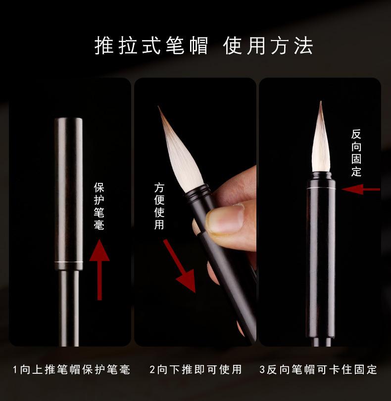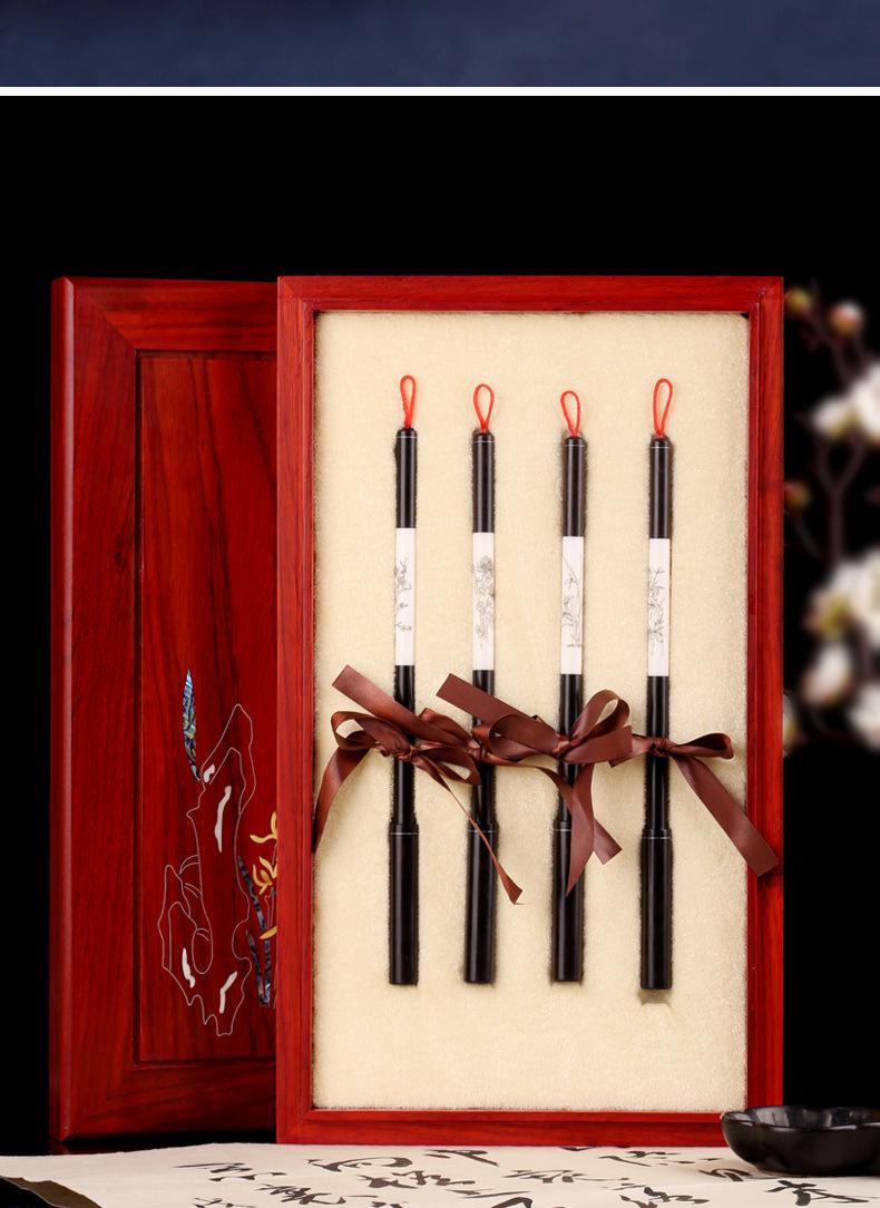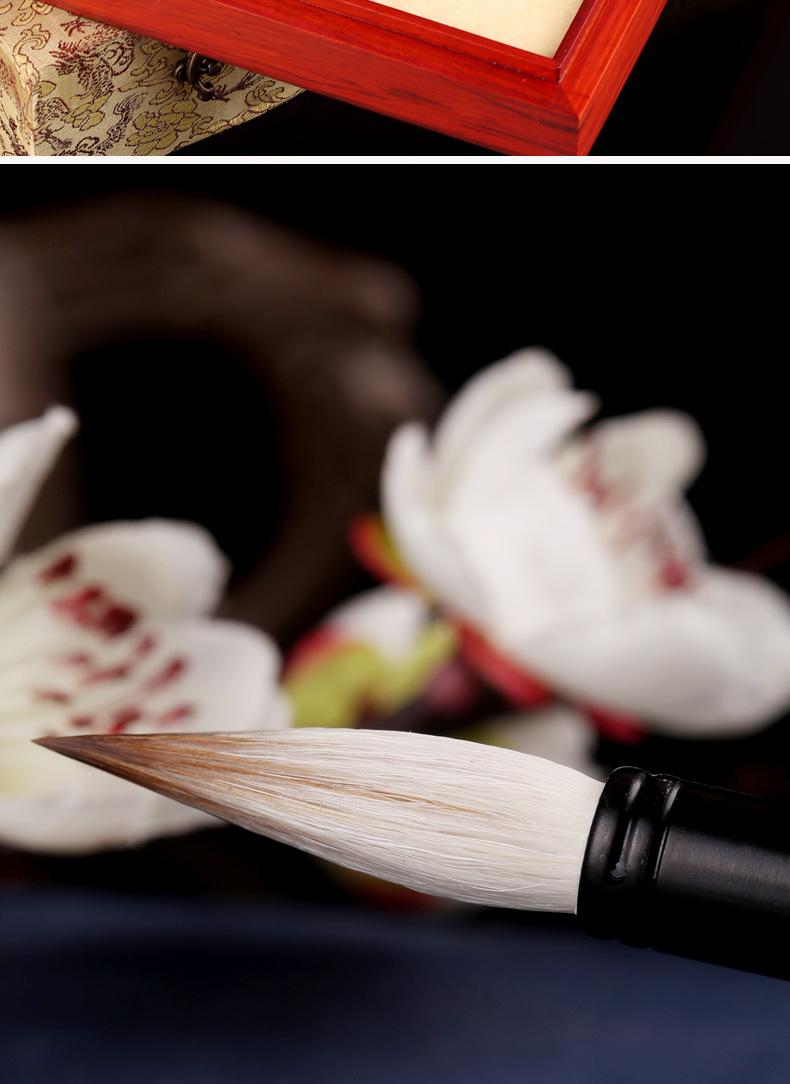 Pincel de escritura de palisandro con incrustaciones de plata y concha, caja de regalo, traje de comadreja, escritura regular pequeña, cabeza de hierro, caligrafía, práctica, copia de escrituras, regalo al por mayor