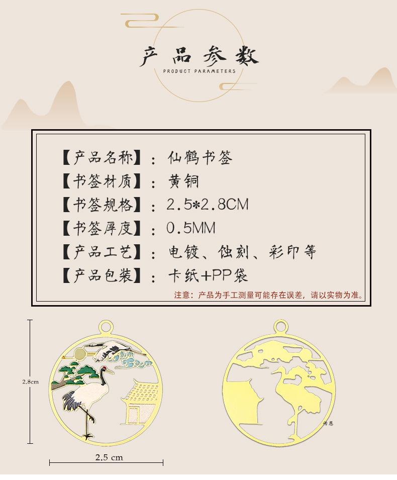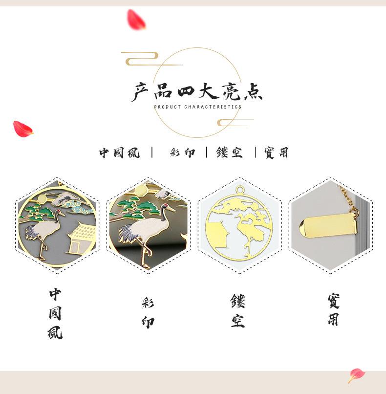Marcapáginas de metal al por mayor en stock, marcapáginas de grulla hueca de color chino, recuerdo creativo, cultural y creativo, regalo exquisito