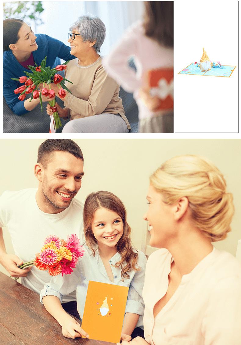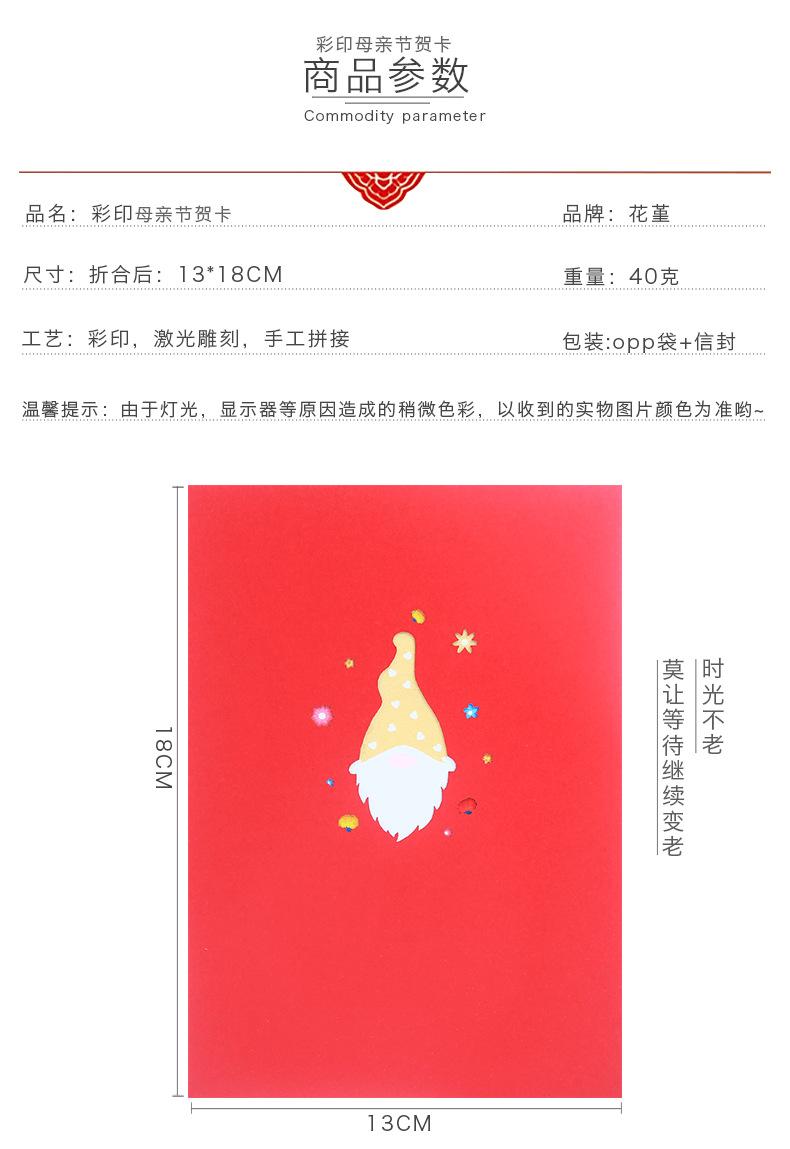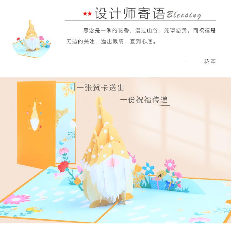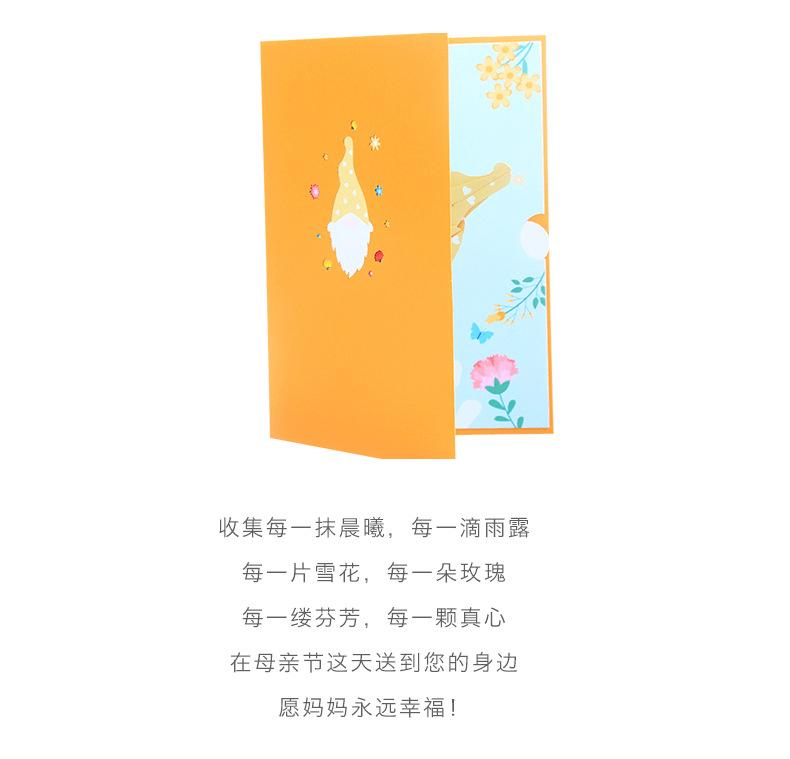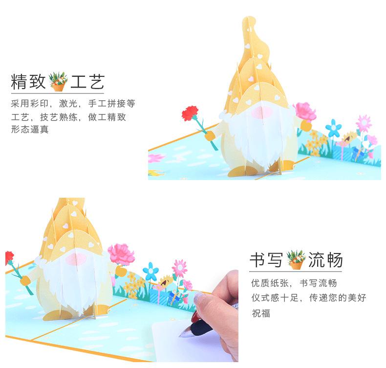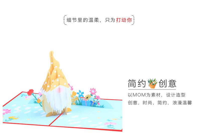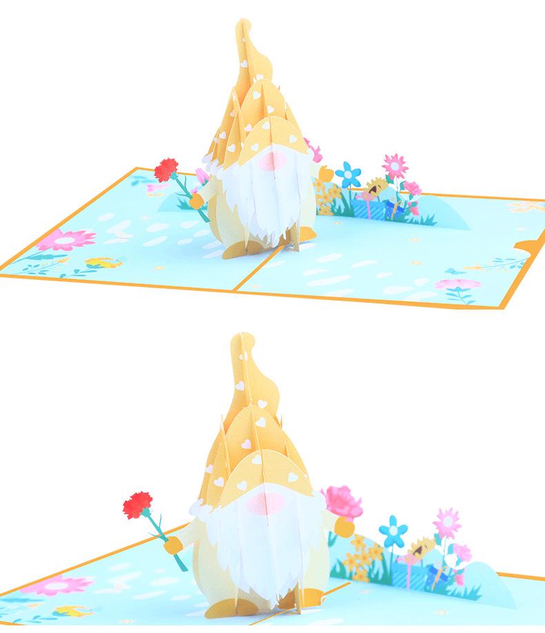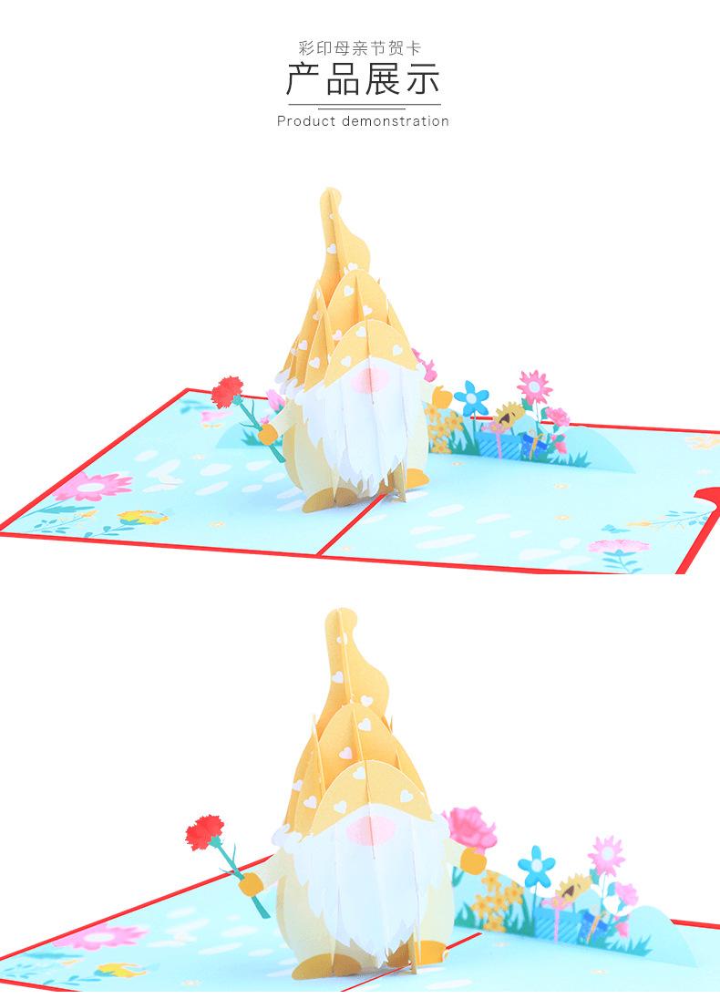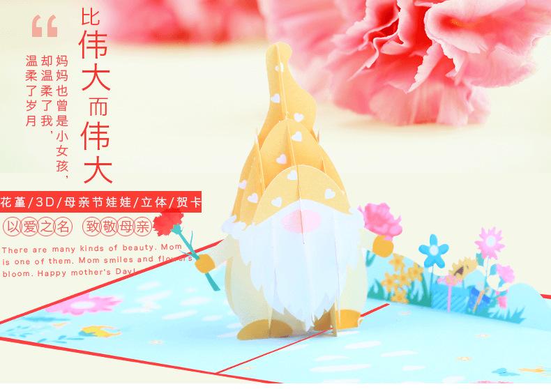 Nueva tarjeta de felicitación tridimensional del Día de la Madre con muñeca sin rostro con impresión a color creativa, tarjeta de bendición 3D, tarjeta de felicitación con ramo de claveles