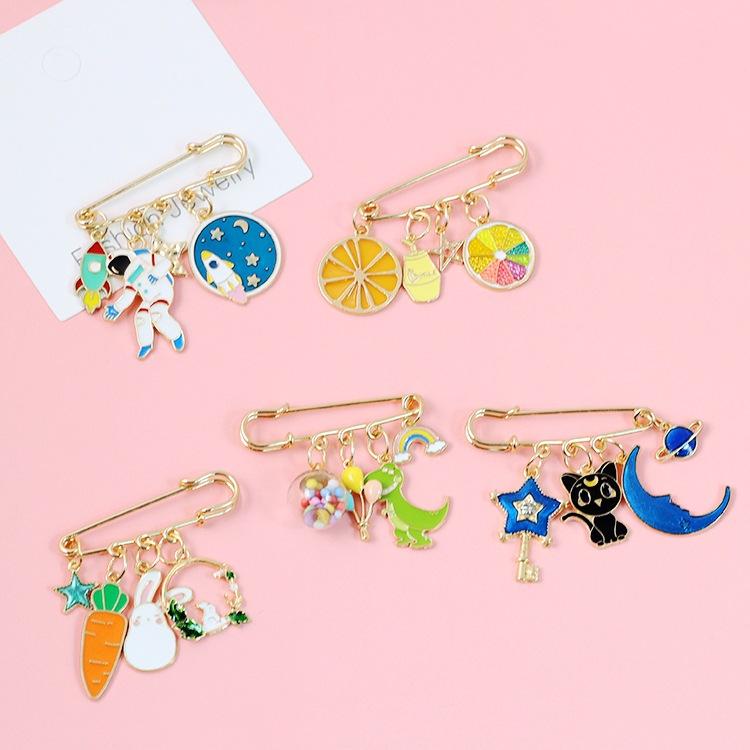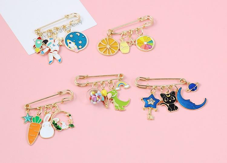 Dinosaur Brooch [862], Lemon brooch 【861, Carrot Brooch 【860, Astronaut Brooch [859]