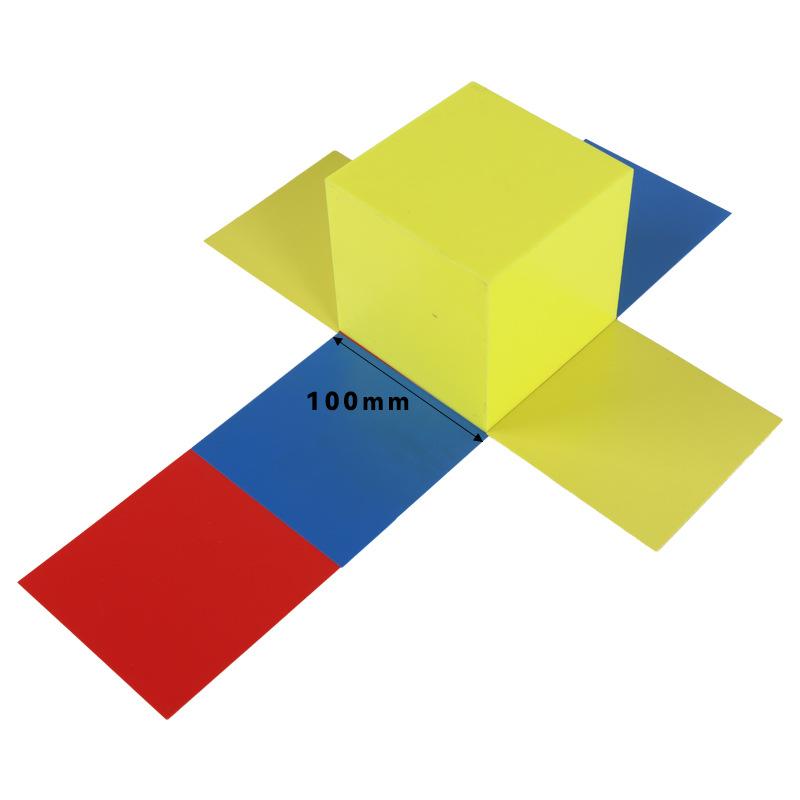 Expansión del área de superficie del modelo geométrico, demostrador de longitud de borde y área de superficie de cilindro cúbico largo de tres piezas