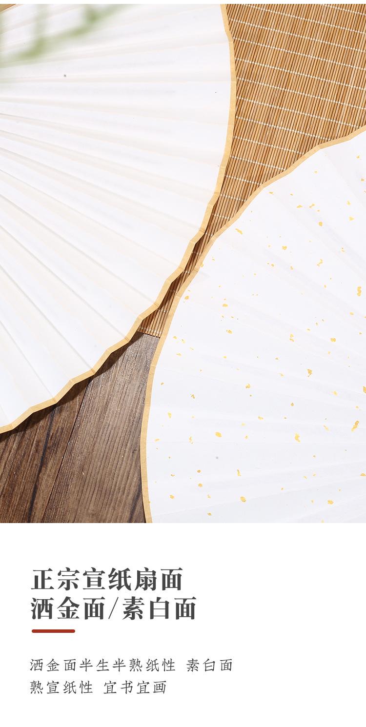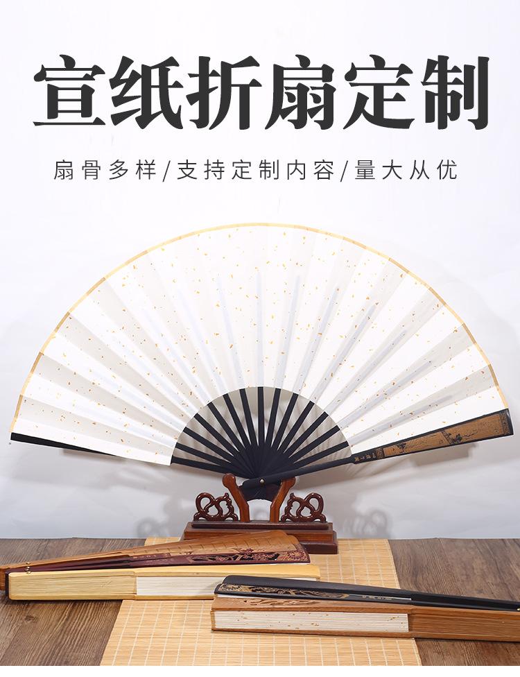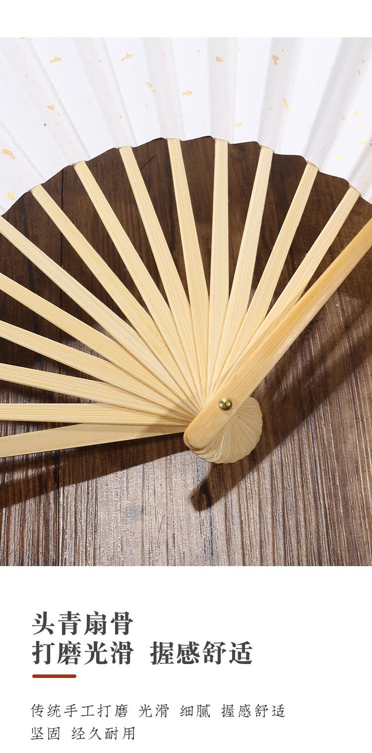 Abanico plegable de papel de arroz de 10 pulgadas, personalizado, en blanco, dorado, estilo antiguo, caligrafía, inscripción, logotipo impreso, publicidad, abanico plegable, venta al por mayor