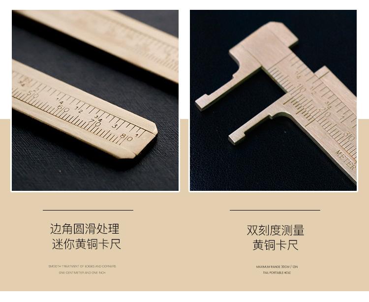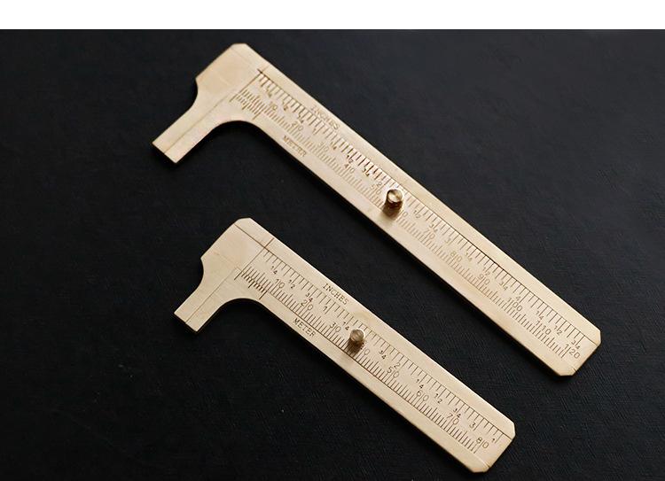 Compra Mini calibrador de latón cobre puro Vernier doble escala regla de medición portátil de bolsillo regla de cobre retro al por mayor en Joom.pro