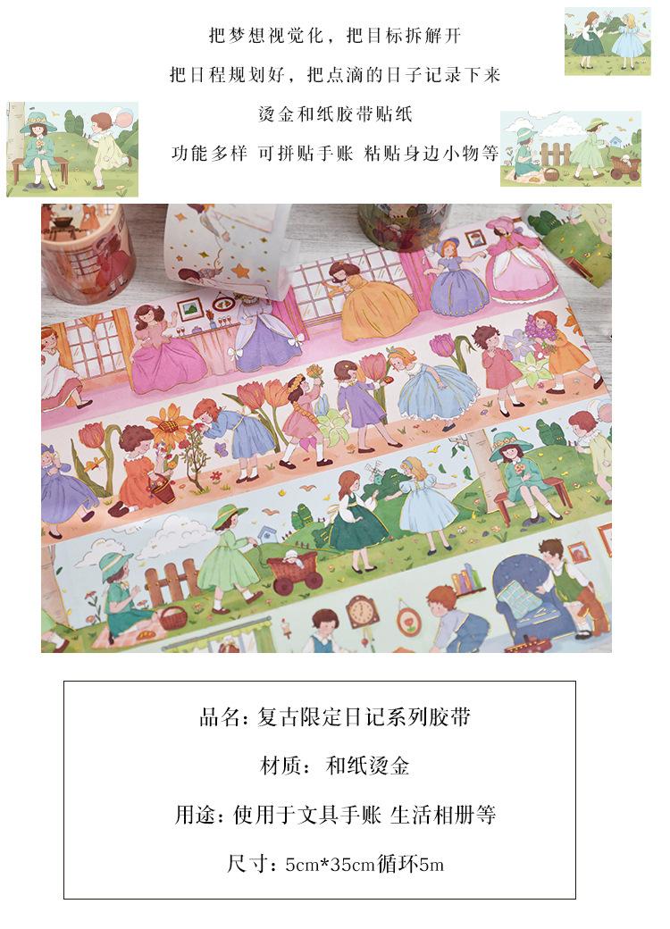 Diario retro de edición limitada con cinta de papel y bronce Yan You Every, dibujos animados de cuentos de hadas, cuentas manuales, pegatinas decorativas DIY