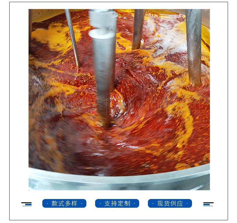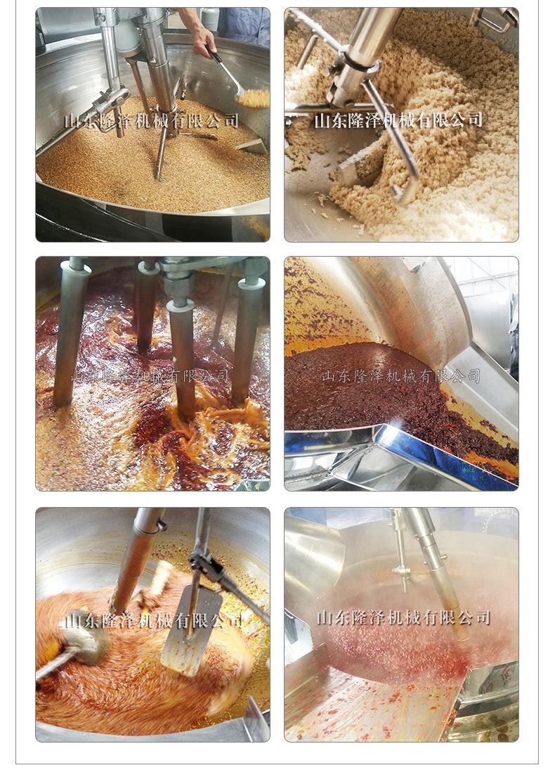 La avanzada estructura de transmisión y sellado garantiza la limpieza e higiene de la parte de transmisión y la olla. El control de velocidad de frecuencia variable proporciona una operación más estable. Además, la máquina incorpora elevación hidráulica, girando la olla para transportar los materiales y sin necesidad de desmontar el agitador, lo que ahorra mano de obra y reduce la intensidad del trabajo. Es un equipo de procesamiento de alimentos con un excelente rendimiento. Se utiliza principalmente para salsas con carne, bases pegajosas para ollas calientes, diversos rellenos para saltear, productos de gelatina de piel de burro y para hervir azúcar.