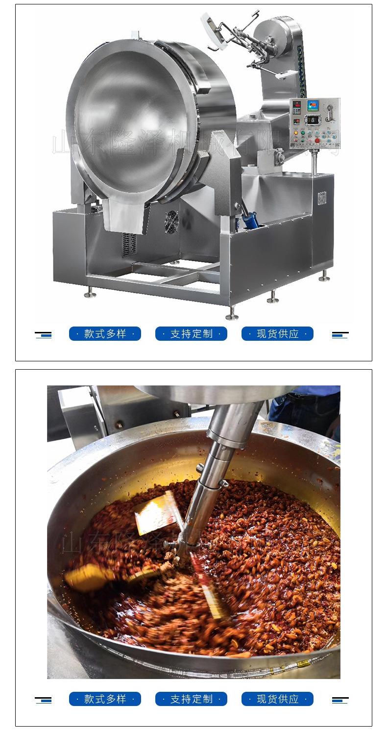 4. Sistema de descarga automático, control de circuito, más cómodo de usar. El cuerpo de la olla se puede inclinar en cualquier ángulo, lo que reduce la mano de obra y mejora la eficiencia de producción.