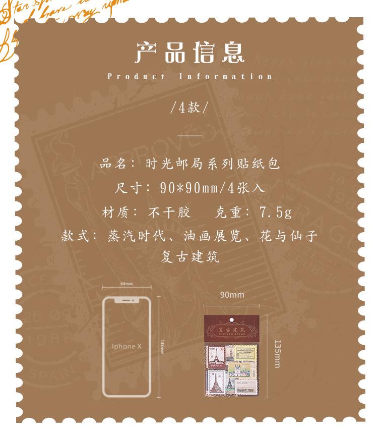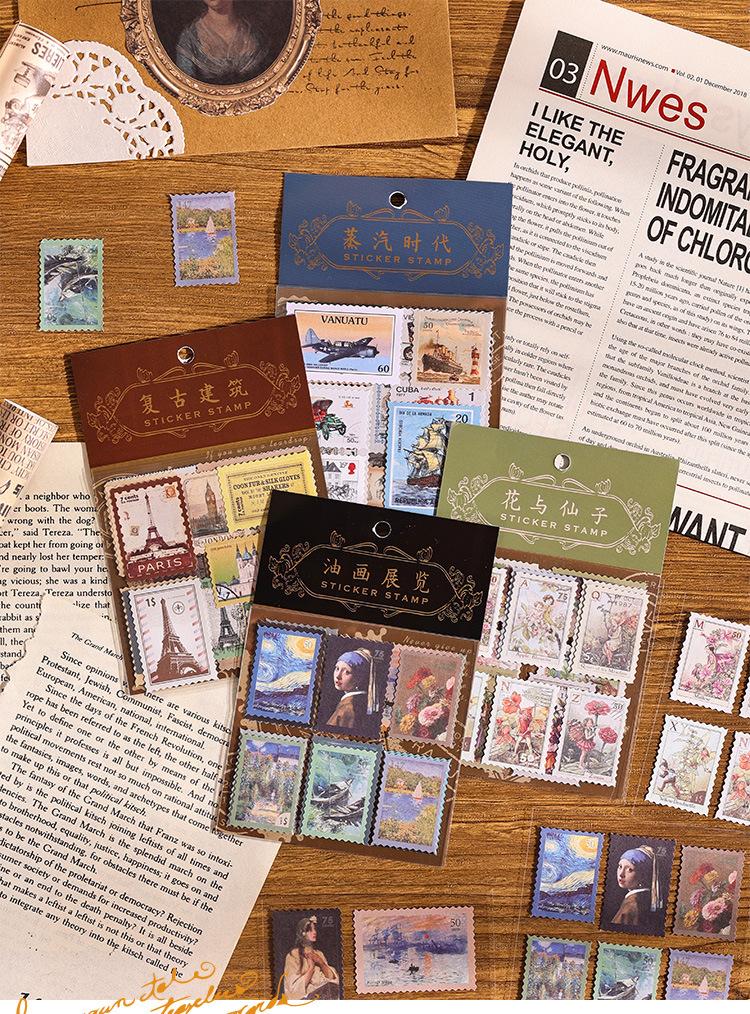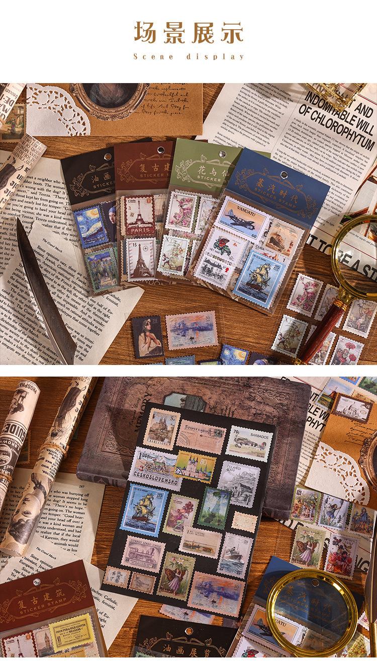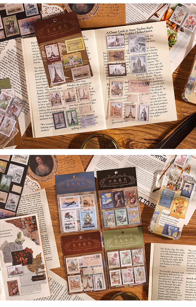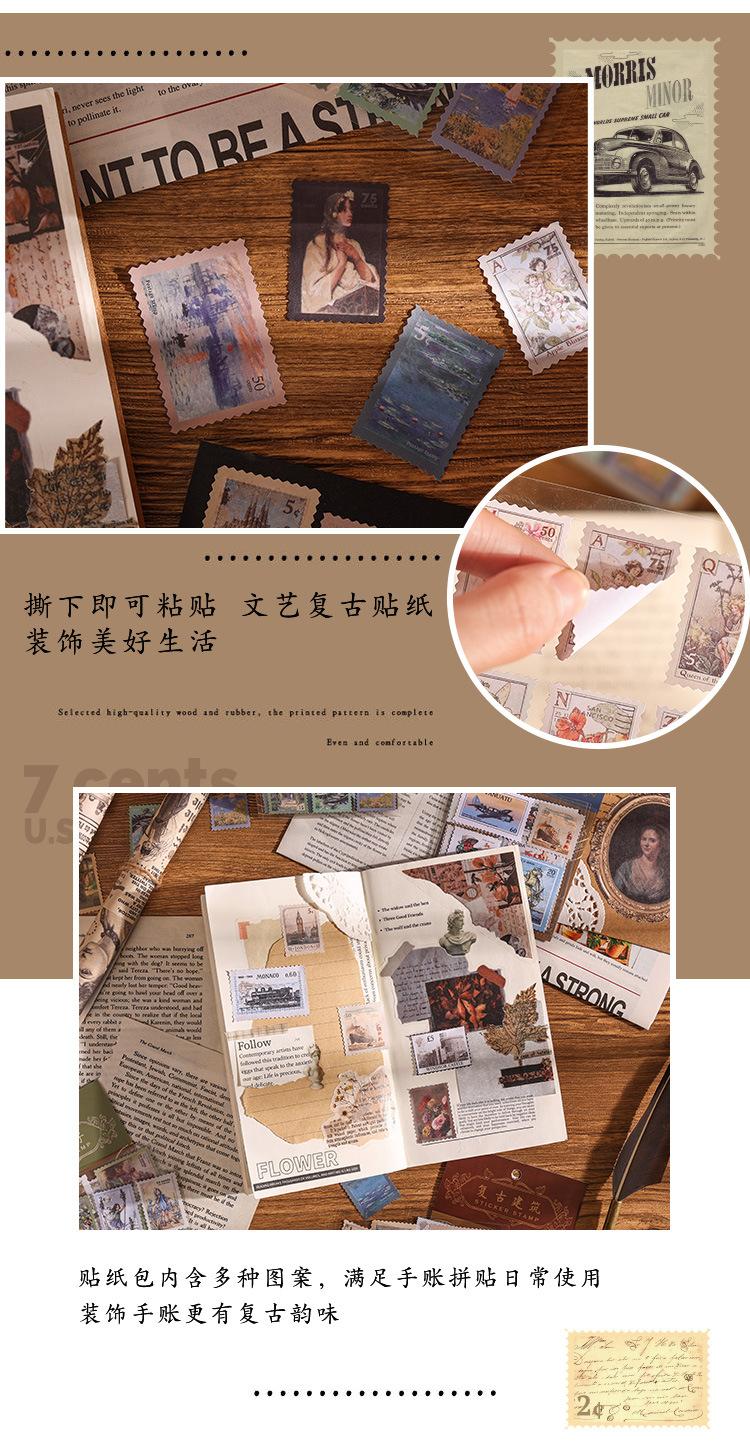 Paquete de pegatinas para el manual de sellos retro, serie Time Post Office, material artístico para el diario, pegatinas decorativas DIY