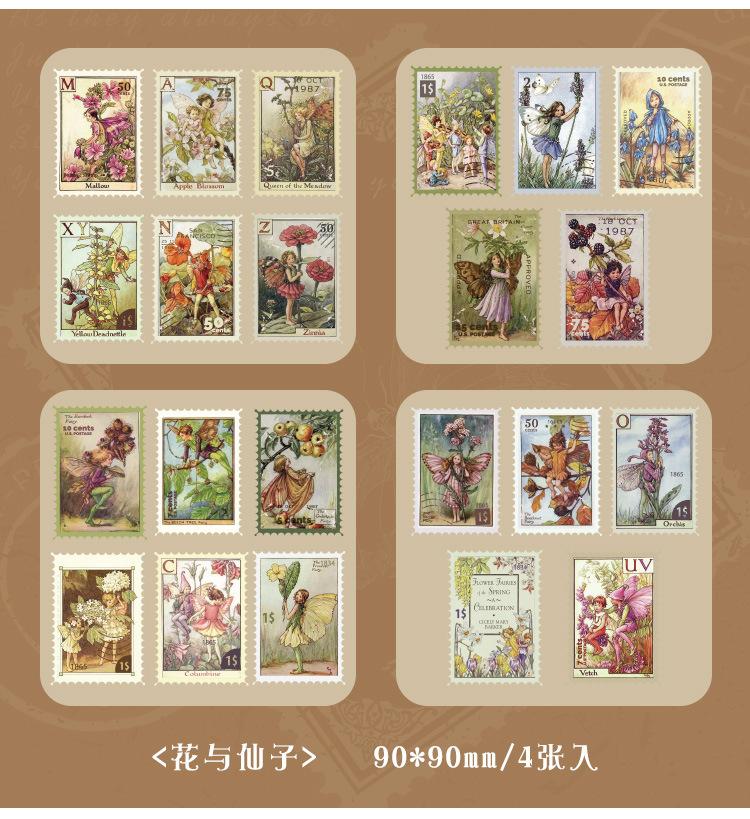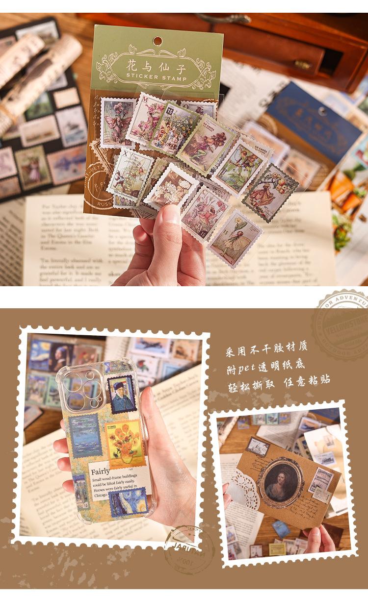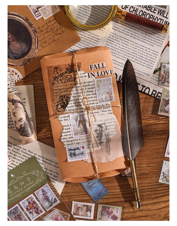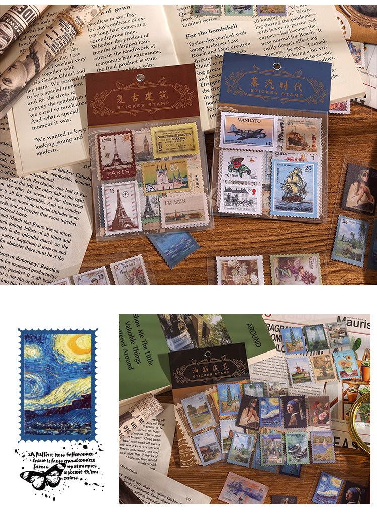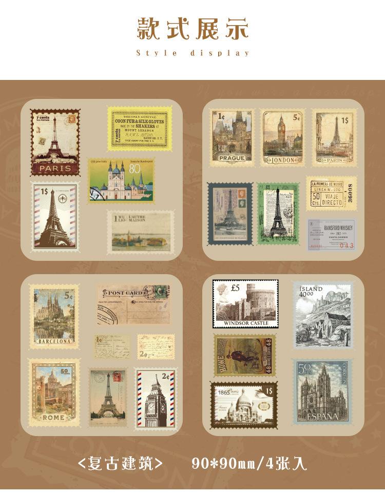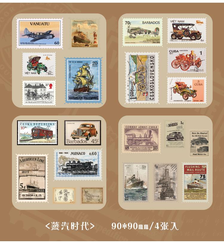 Paquete de pegatinas para el manual de sellos retro, serie Time Post Office, material artístico para el diario, pegatinas decorativas DIY