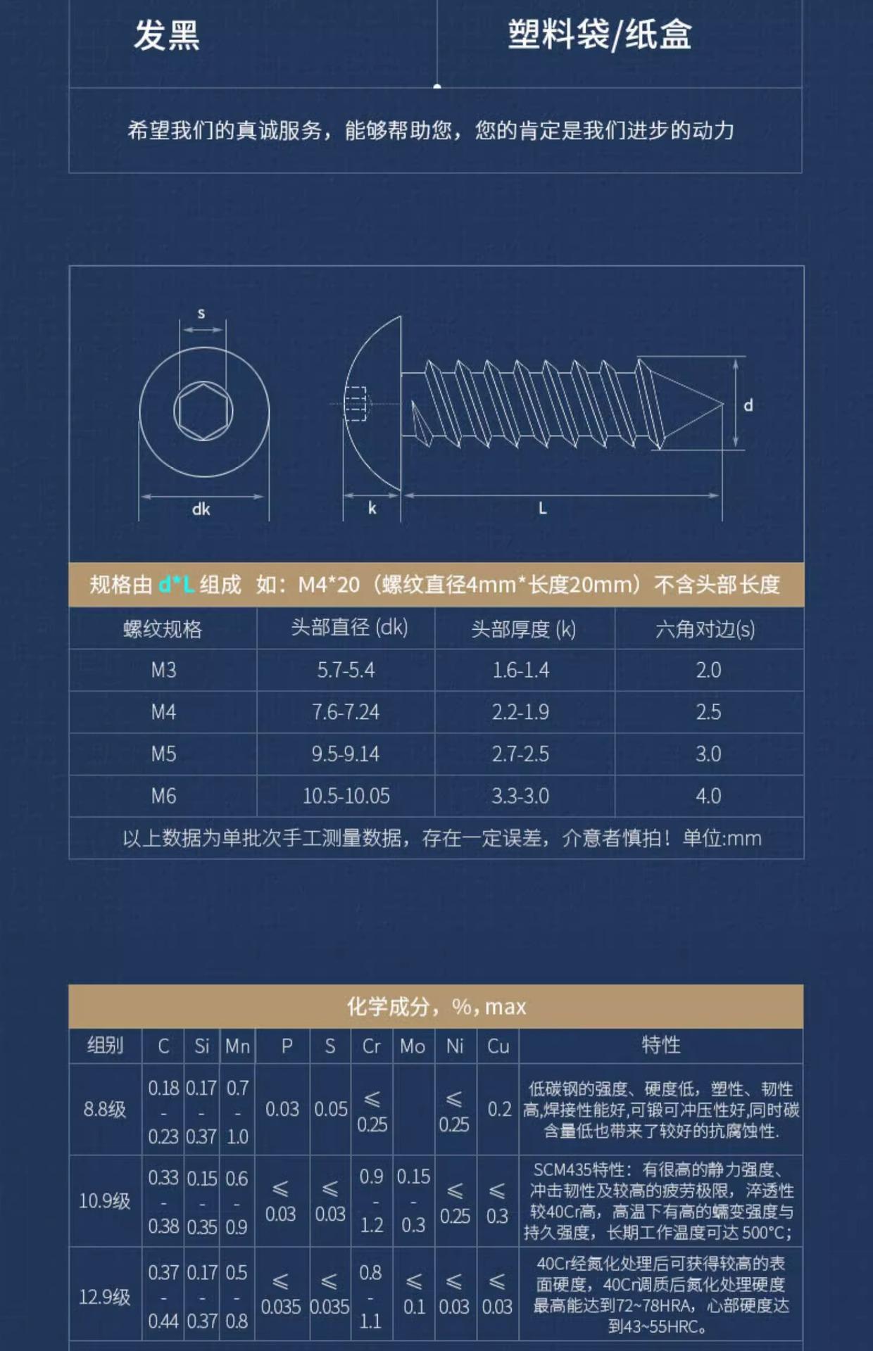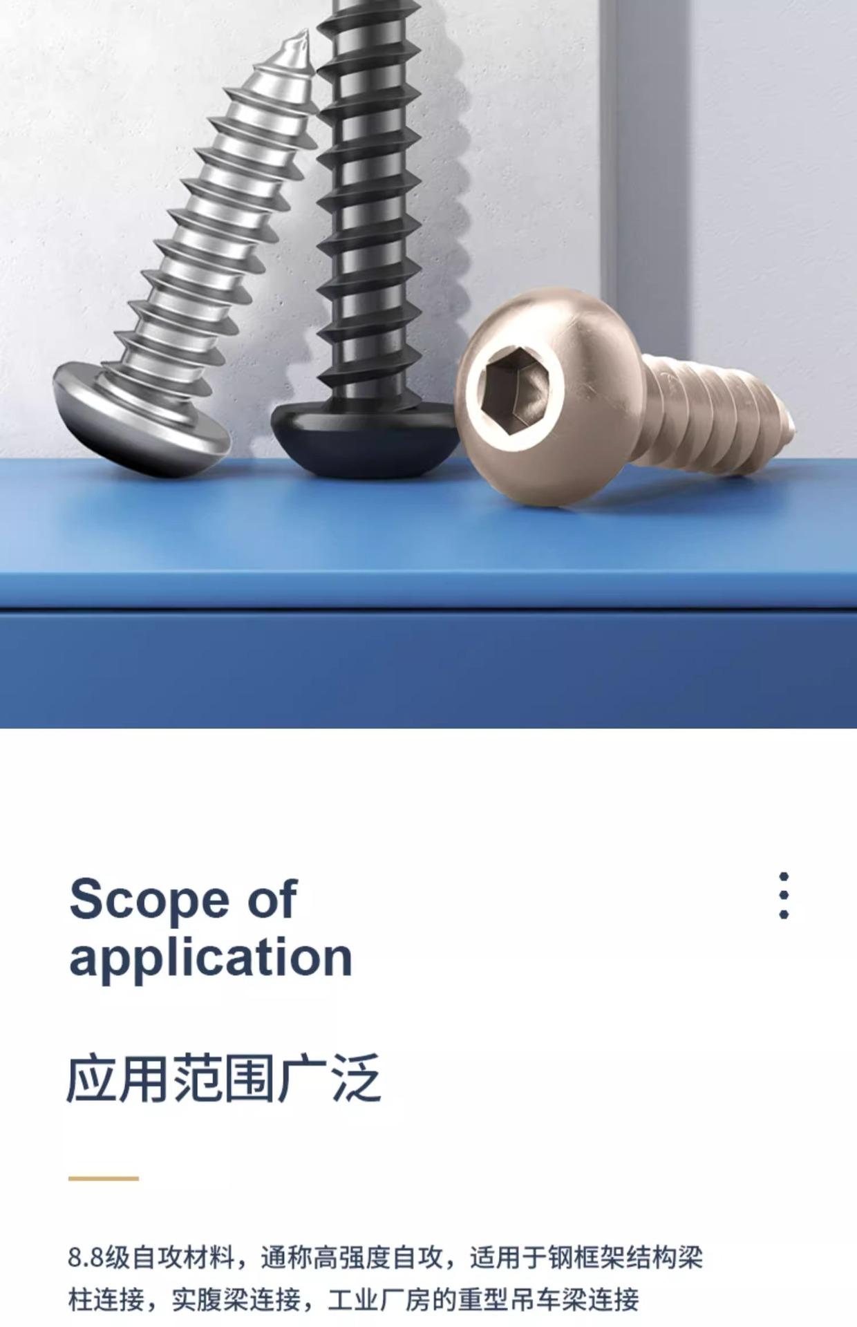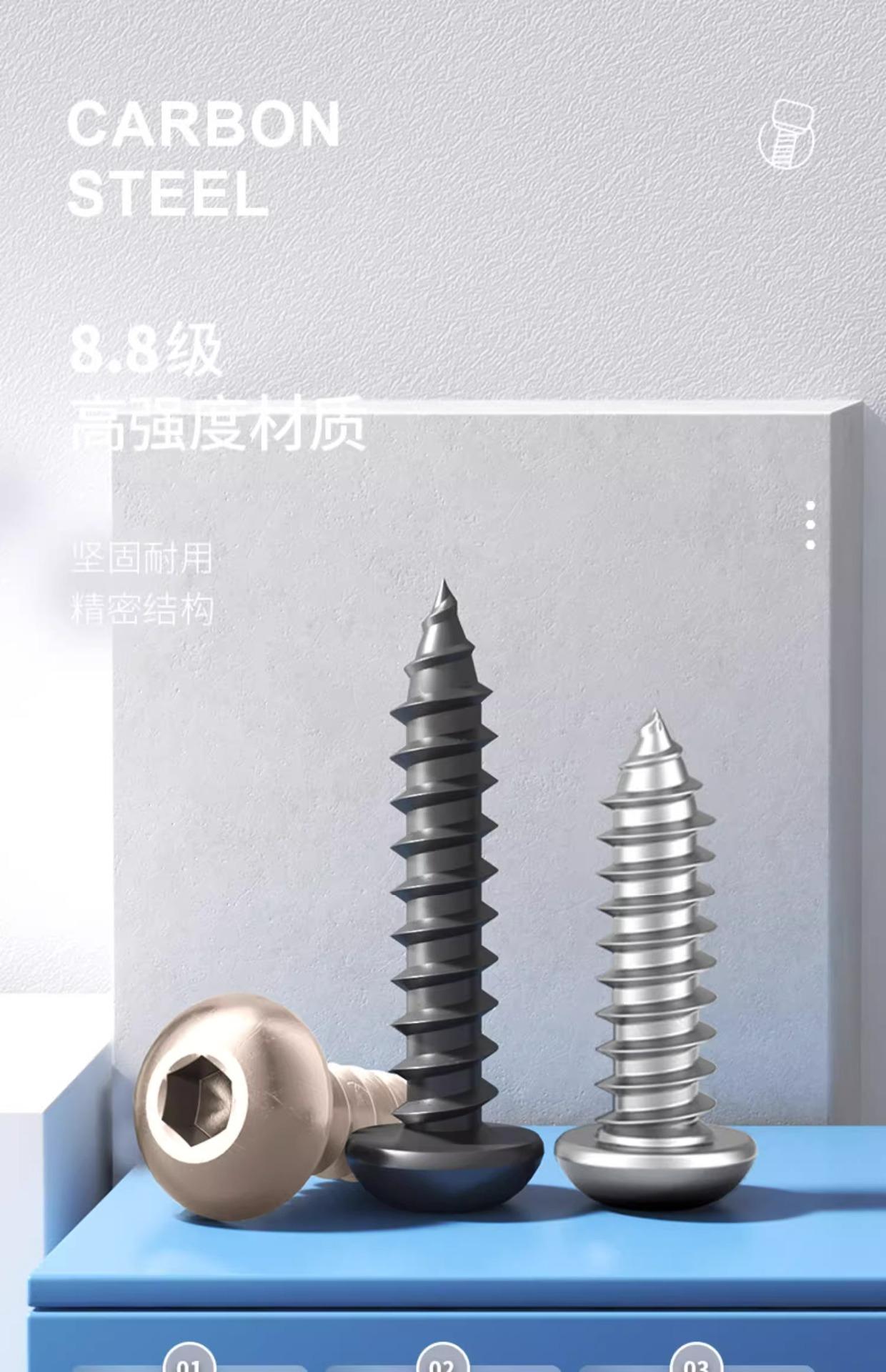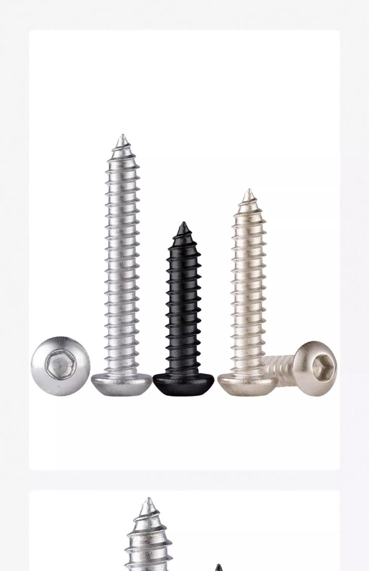 Tornillos Autorroscantes de Acero Inoxidable 304 de Cabeza Redonda y Zócalo Hexagonal Grado 8.8 de Alta Resistencia Niquelados de Cabeza Panorámica y Zócalo Hexagonal
