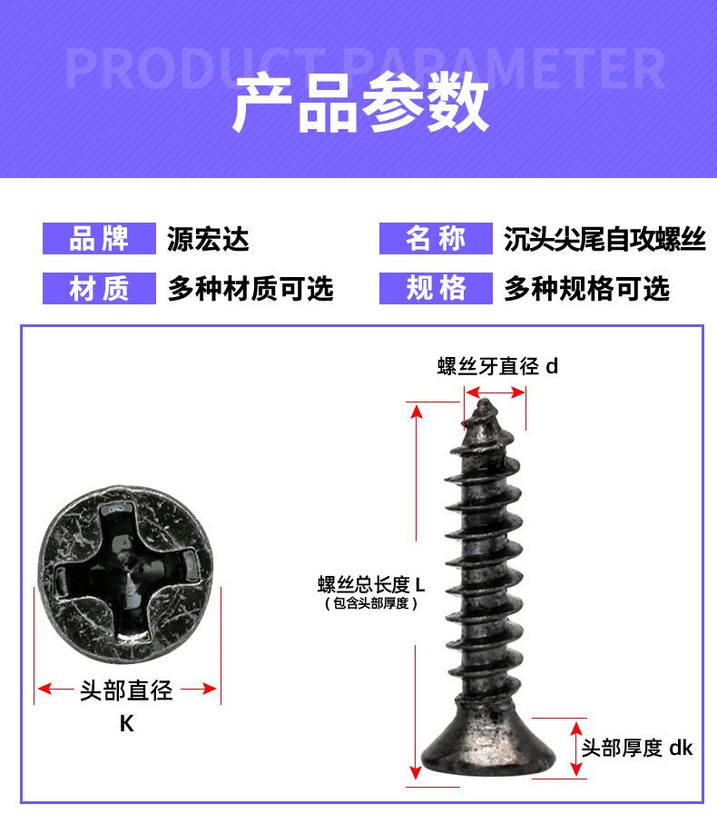 Tornillo autorroscante de cabeza avellanada en cruz negro KA, tornillo autorroscante de cabeza plana y cola puntiaguda, dientes de madera, tornillo electrónico M2.2-M5