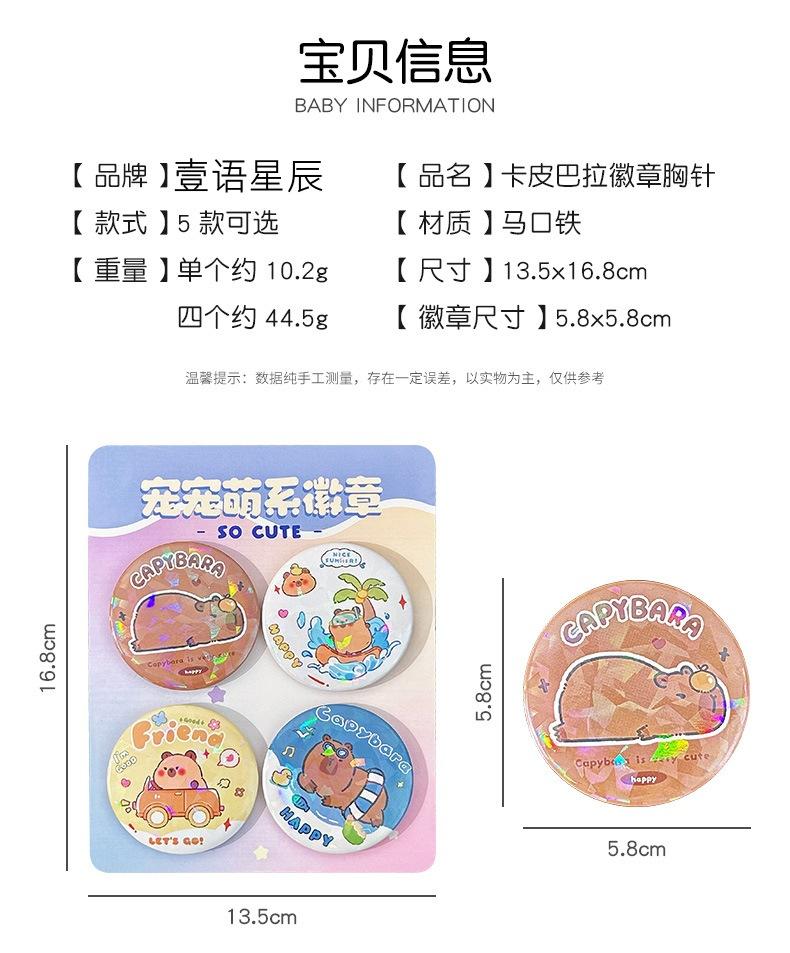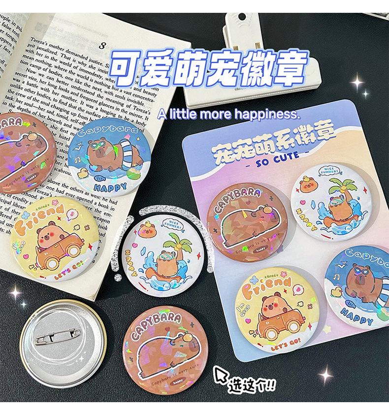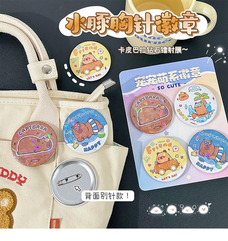 Insignia de capibara, lindos capibaras, decorativos, de hojalata, para niños, broche colgante, pequeño regalo