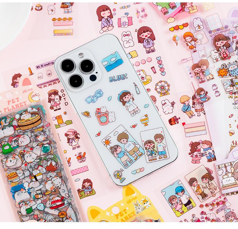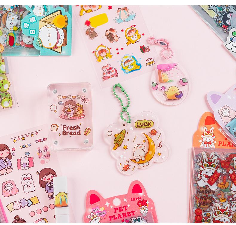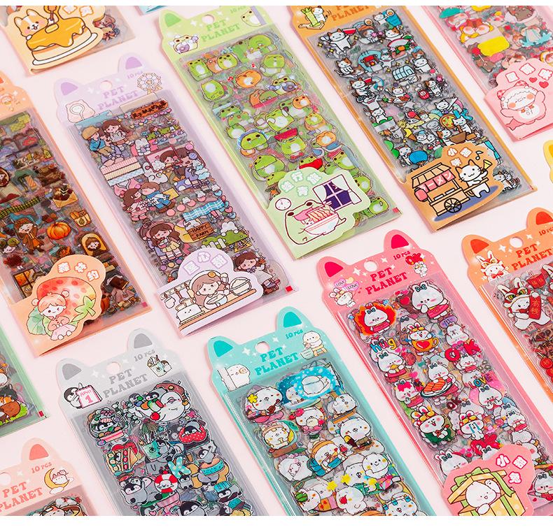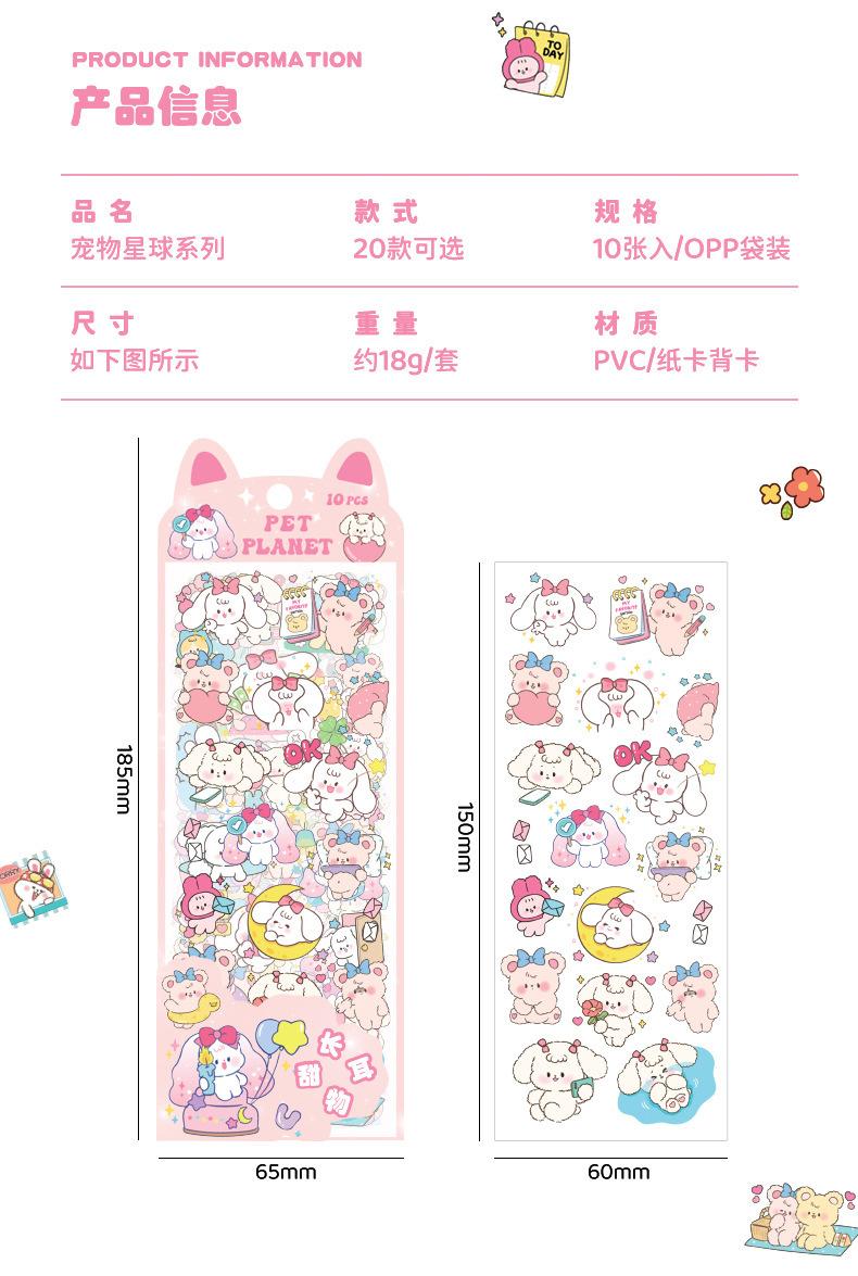 Serie planeta mascota Pegatina de cuenta de mano linda caricatura pegatina para niños creativa impermeable mascota cuenta de mano bolsa de material
