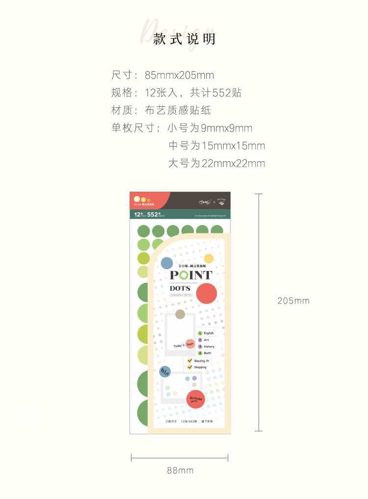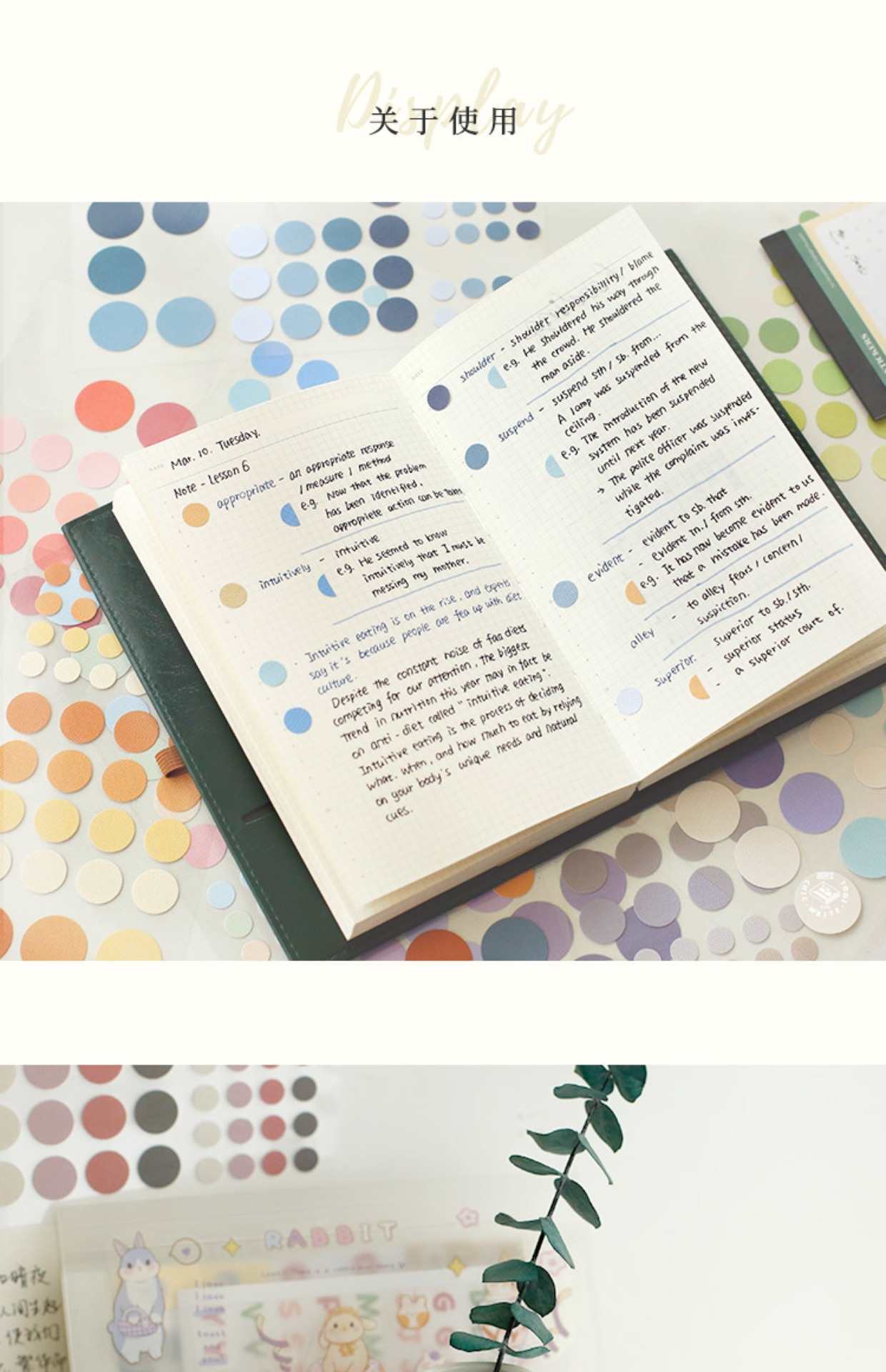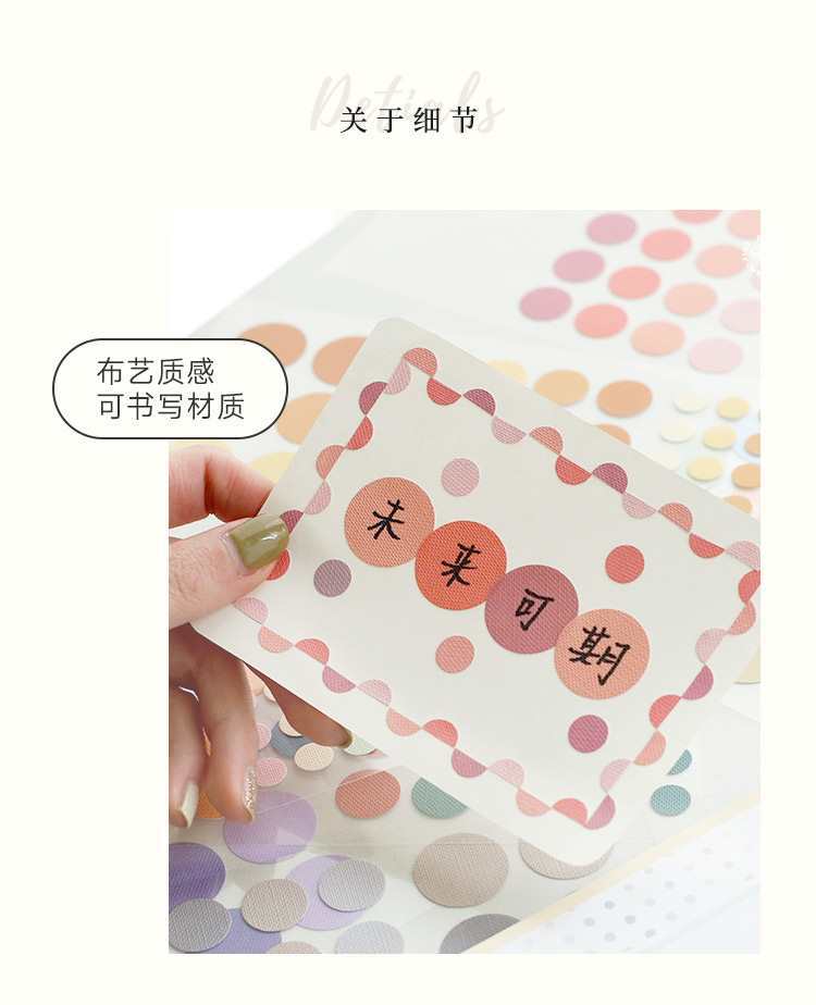 Paquete de 552 pegatinas de puntos con patrón de tela escribible, marca redonda, diario básico, collage, material decorativo.
