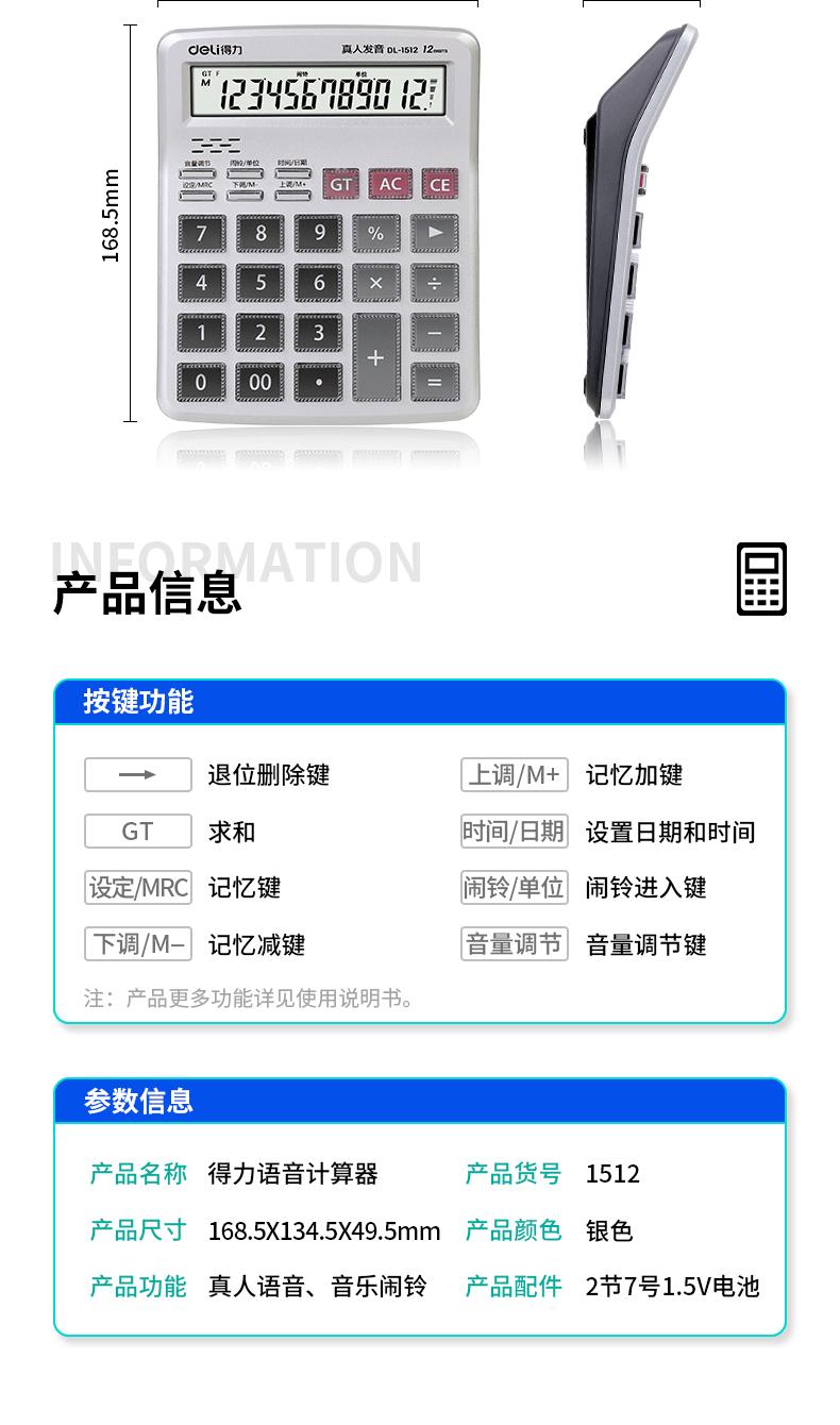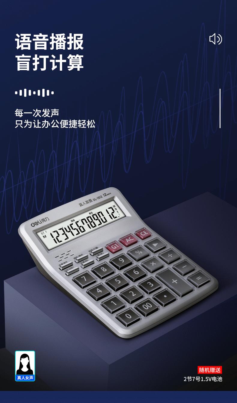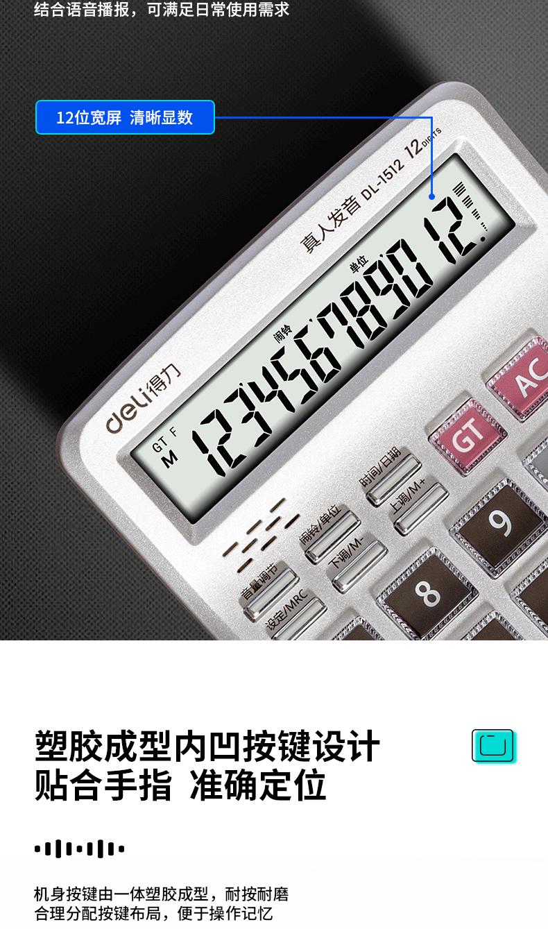 Calculadora de voz en vivo Deli 1512 Suministros de oficina financiera Computadora Botón grande de 12 bits Botón de cristal