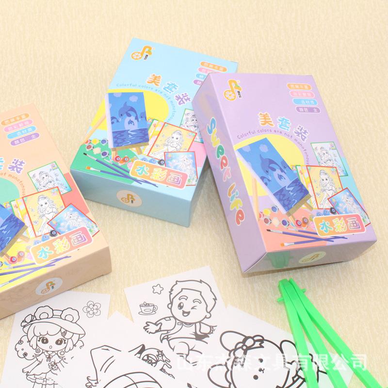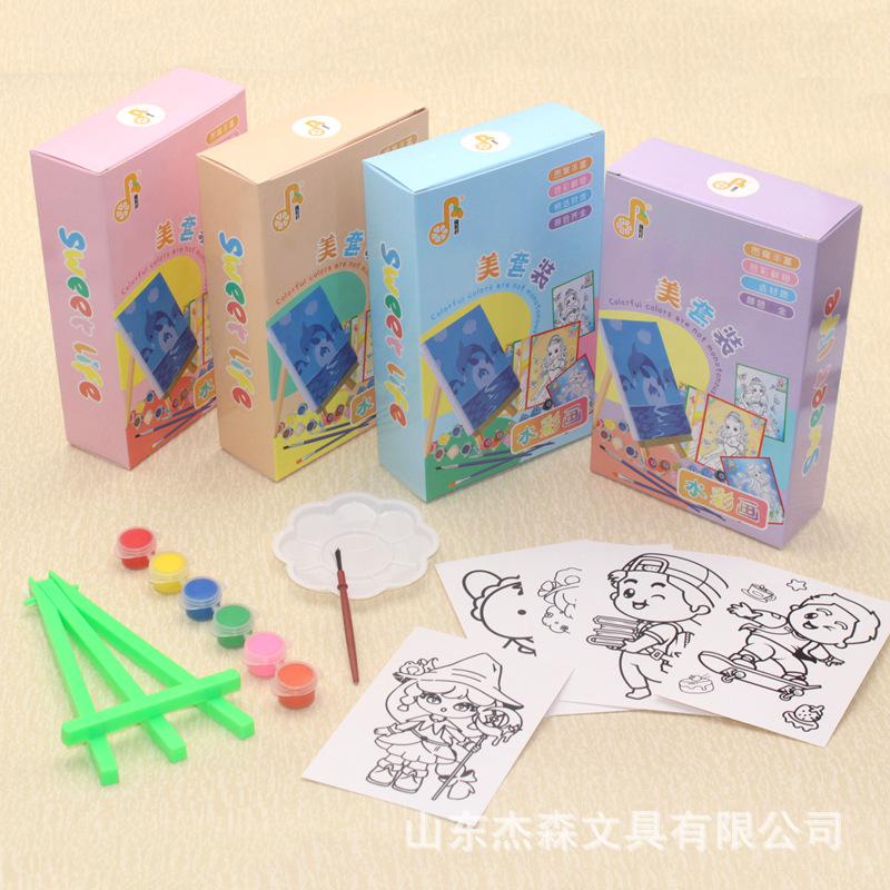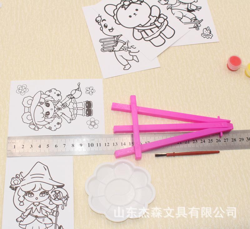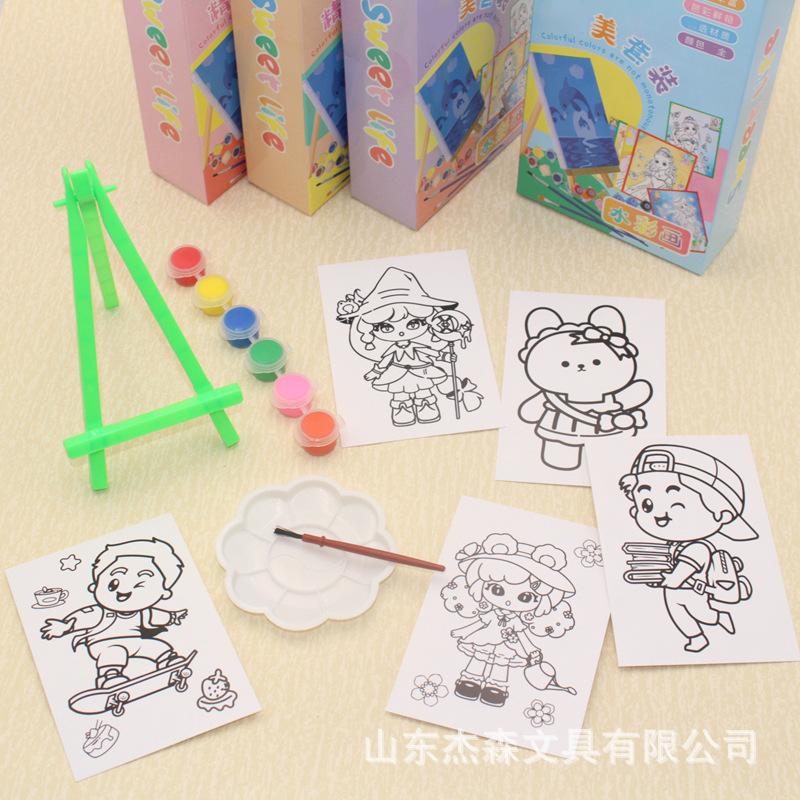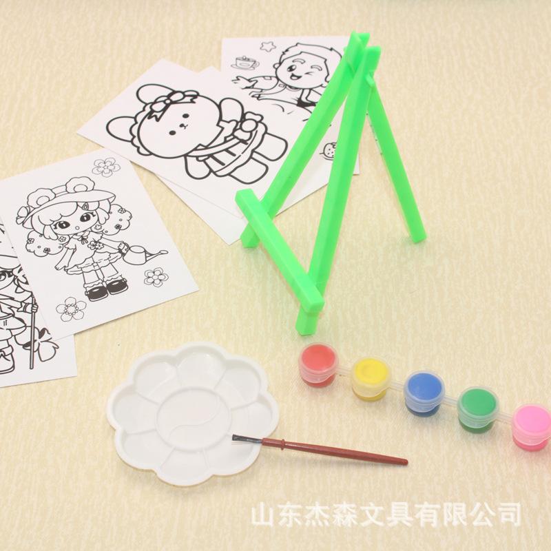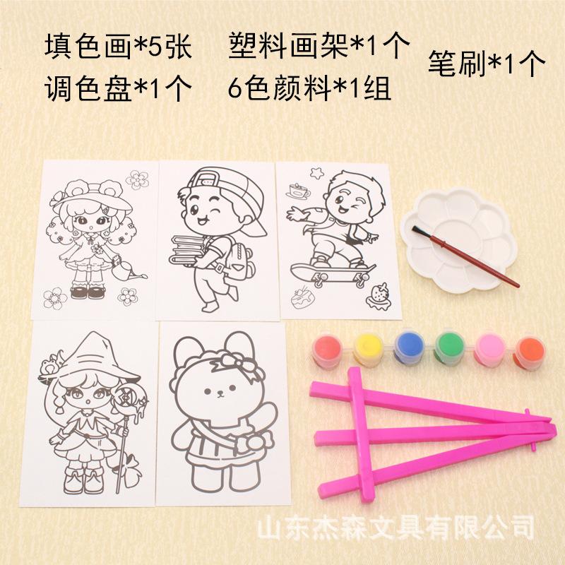 【Encuadernación】: 5 plantillas para colorear + 6 colores de pintura + pincel + caballete + paleta/caja