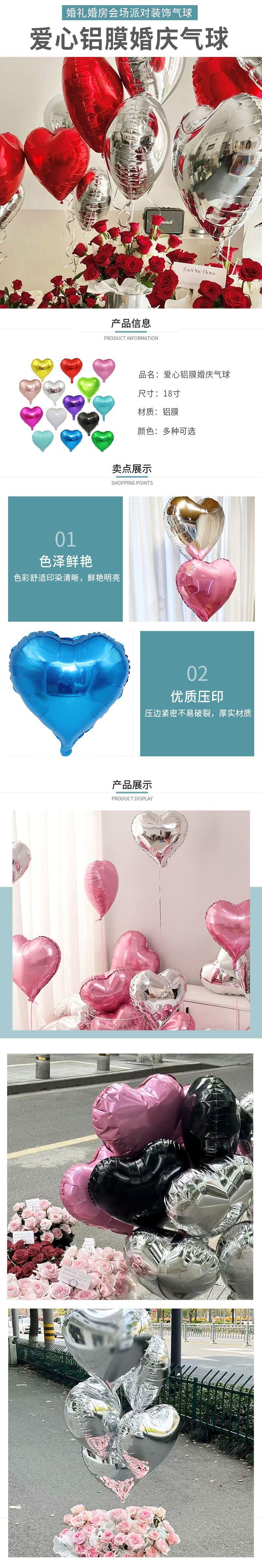 Globo de boda de película de aluminio con forma de corazón de 18 pulgadas directo de fábrica, globo de decoración para fiesta, lugar de boda, habitación de boda