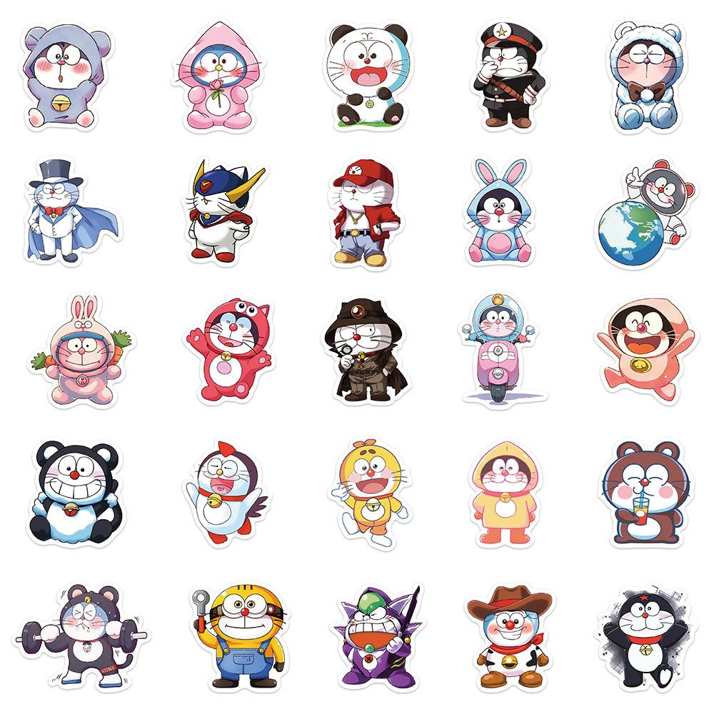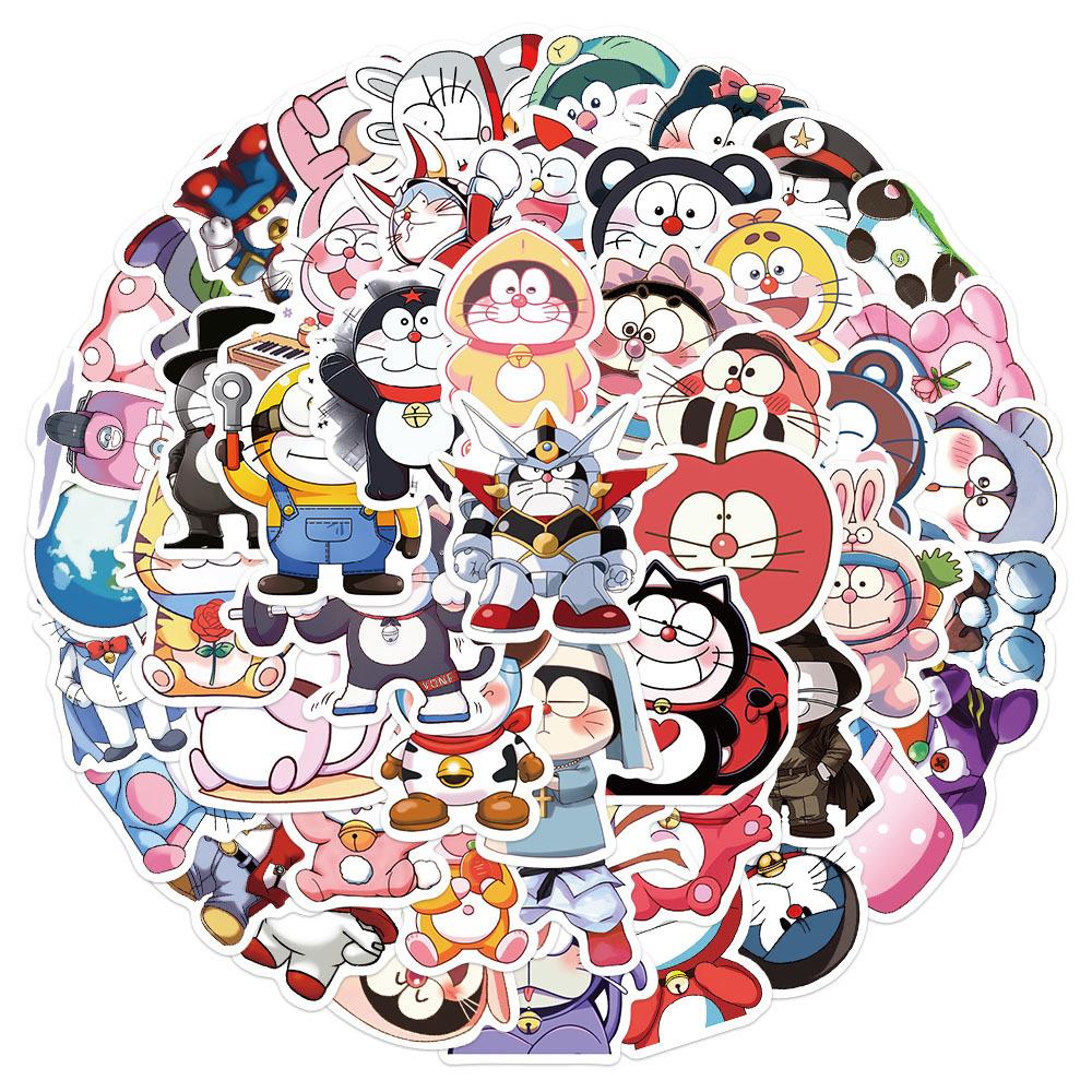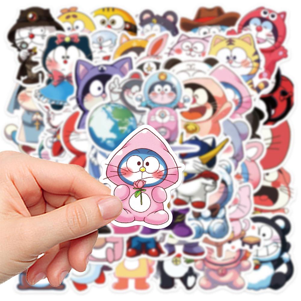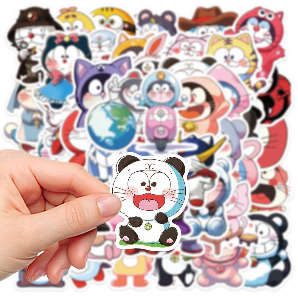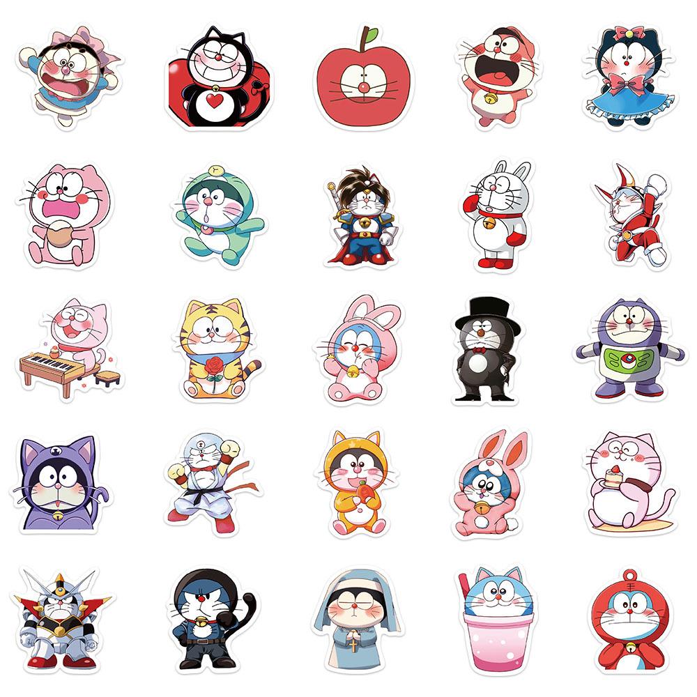 50 pegatinas de gato ding-dang de viento de dibujos animados pintadas a mano para laptop, libro de mano, carcasa de teléfono móvil, termo, pegatinas decorativas