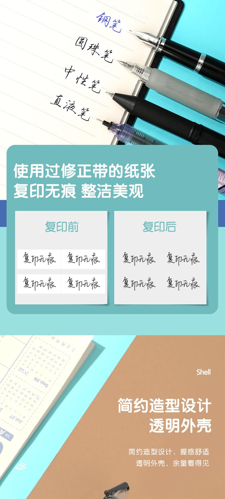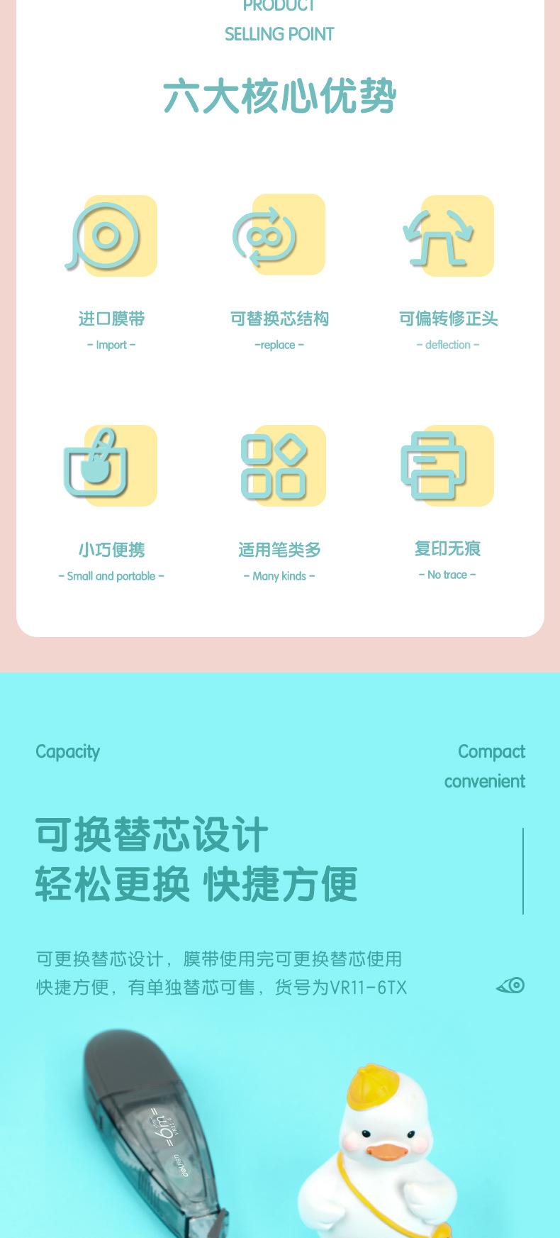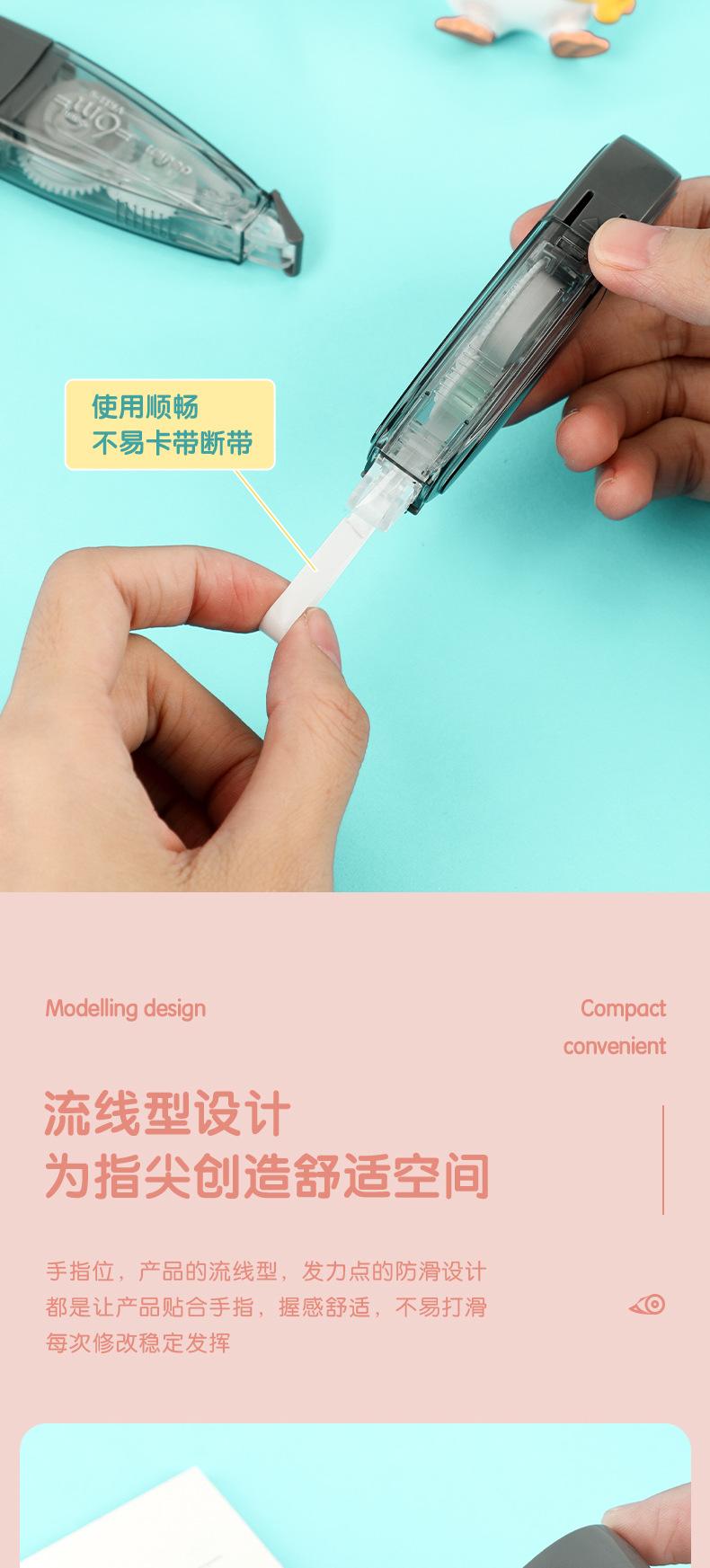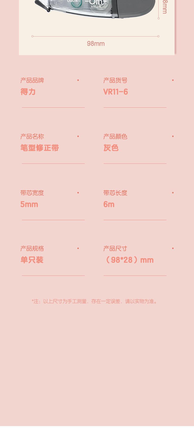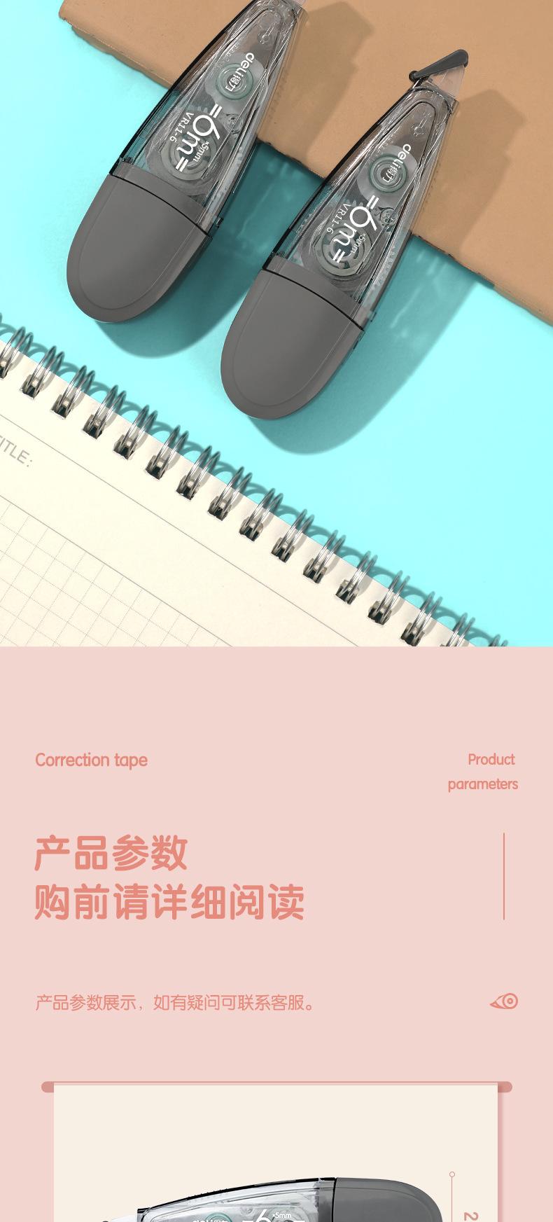 Cinta correctora Deli Deli VR11-6, tipo bolígrafo, 6 m, con núcleo reemplazable para estudiantes de secundaria.