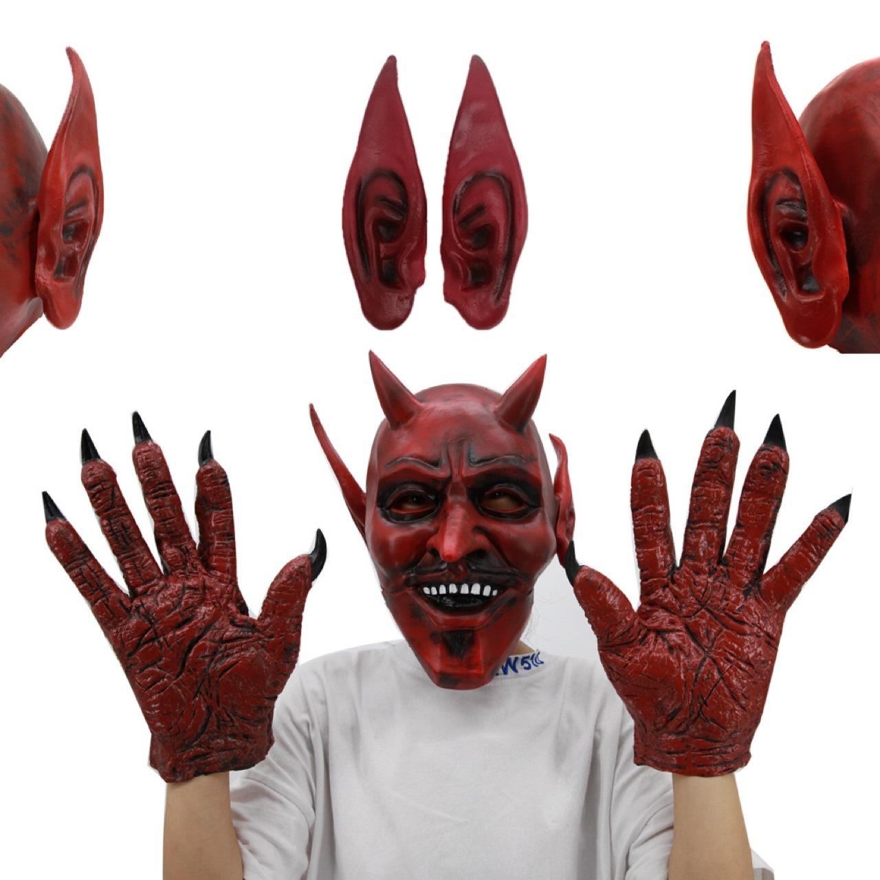 Máscara de diablo de Red Bull de terror de Halloween, accesorios de mascarada para cosplay, traje, guantes de látex al por mayor