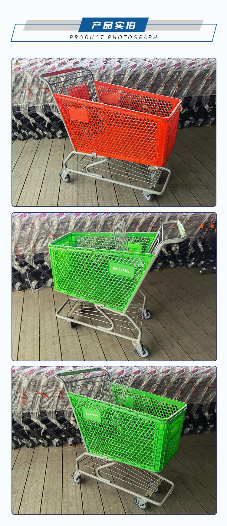 Suministro puntual de fábrica, carrito de compra americano, carrito de supermercado semiplástico.