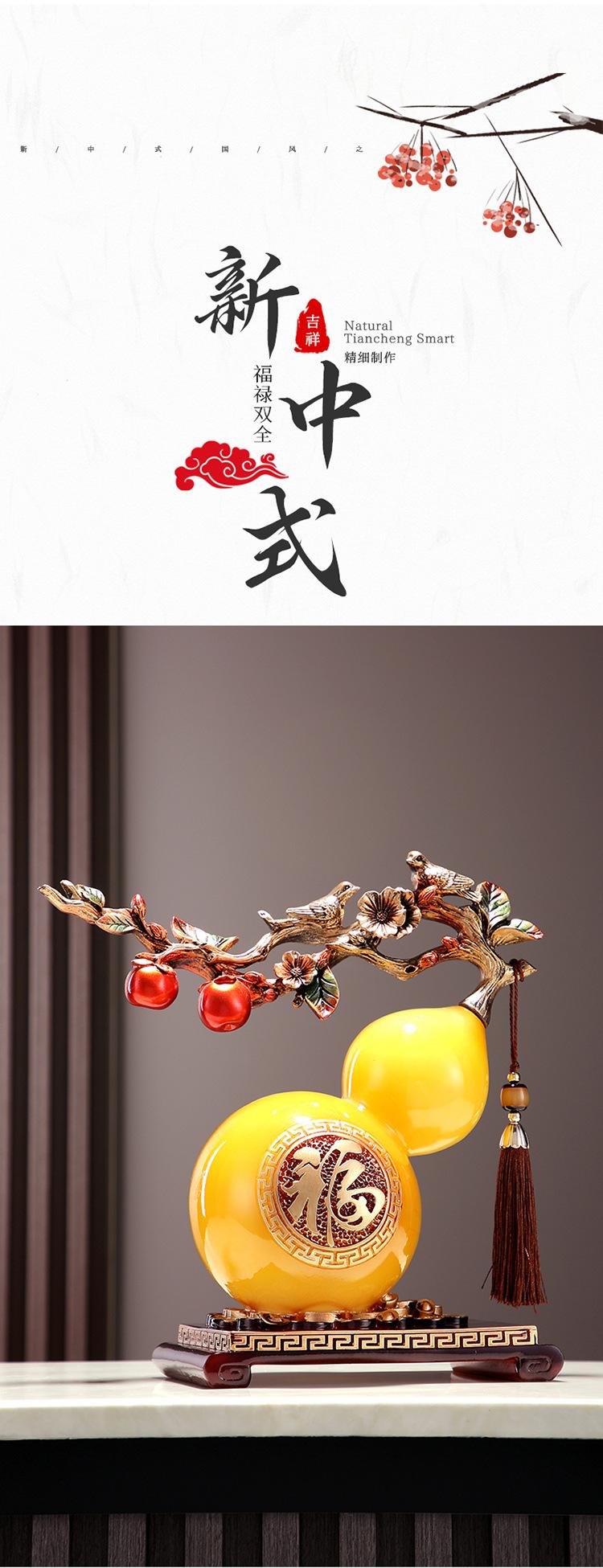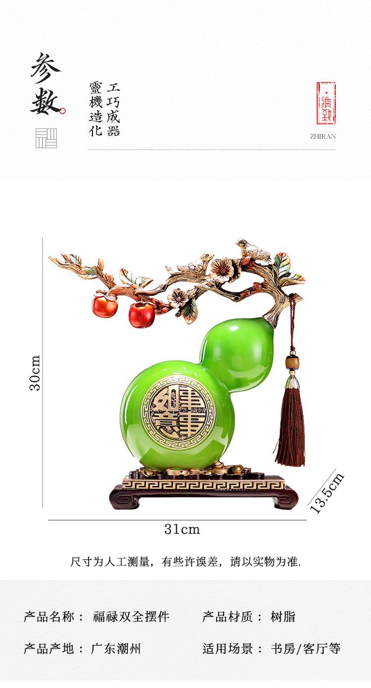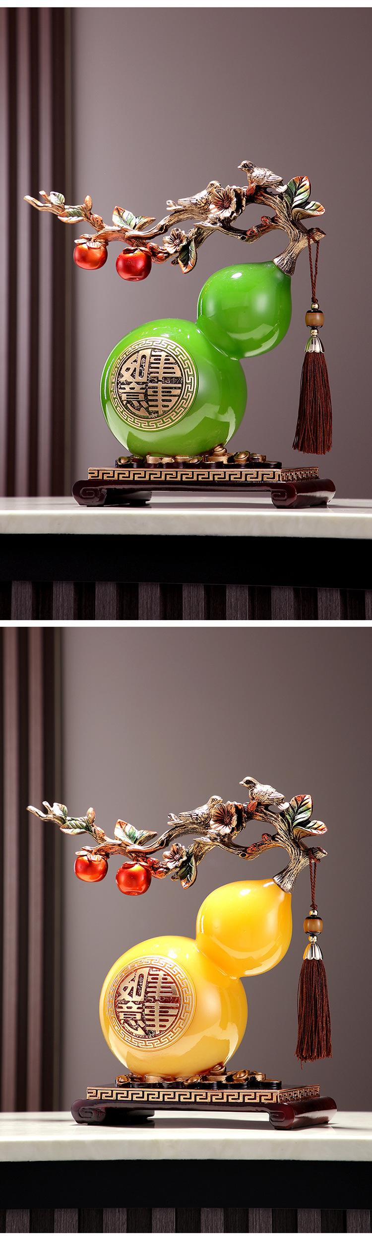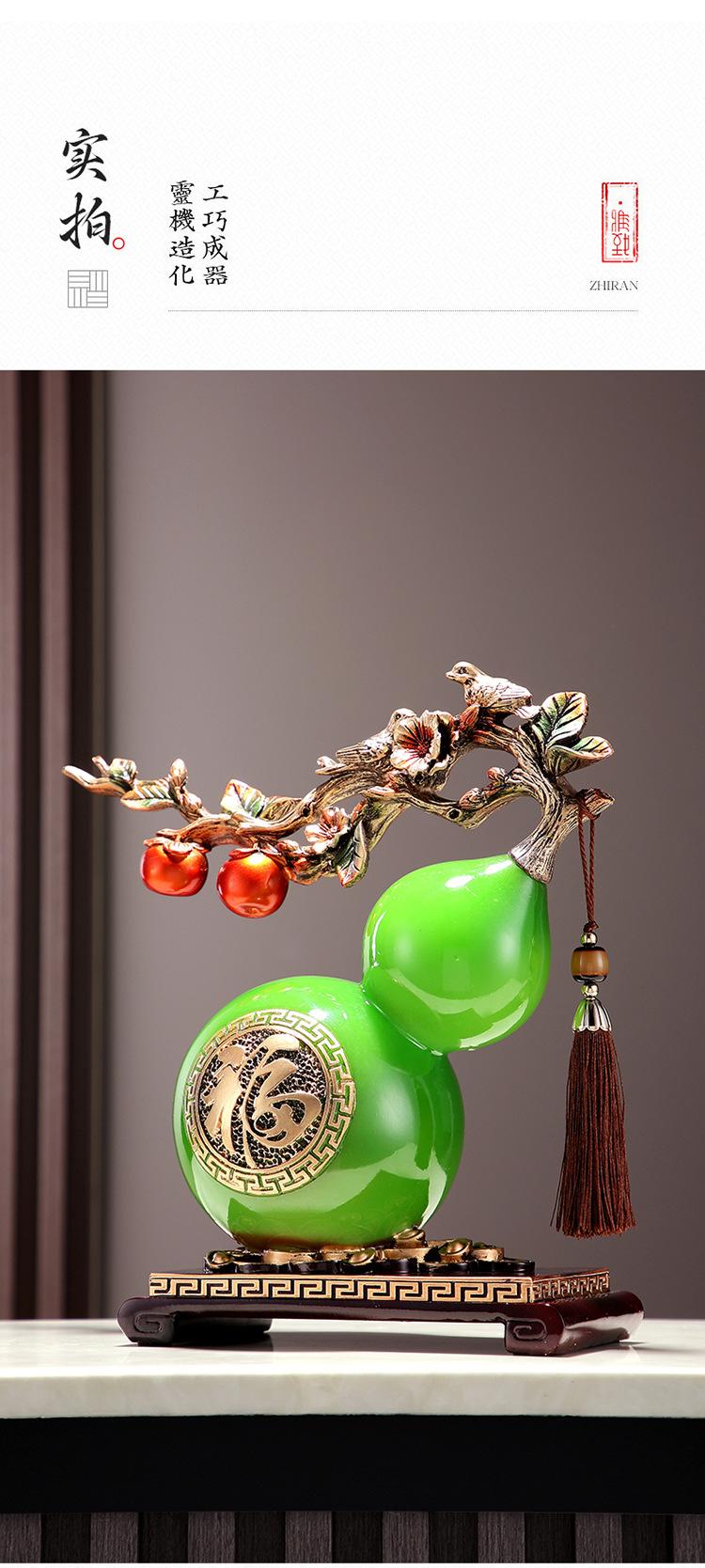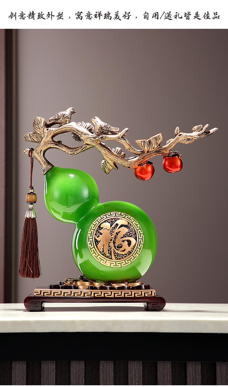 Calabaza de resina de jade de imitación transparente con carácter fu, decoración creativa para escritorio, mueble de vino, pasillo, TV, etc.