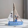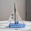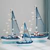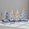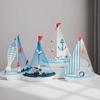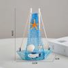 Adornos de Modelo de Velero Mediterráneo Barco Artesanal Antiguo Barco de Conchas Azul y Blanco Adornos para Sala de Estar Comedor