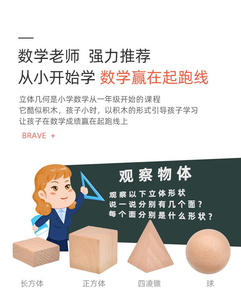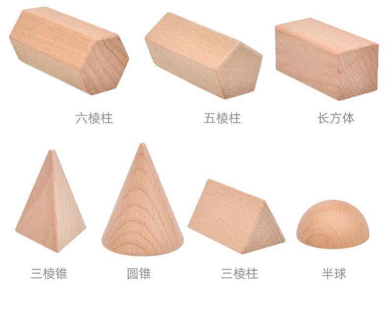 Modelo de forma geométrica de color madera, 12 piezas, material didáctico cognitivo gráfico tridimensional de matemáticas de primer y segundo grado para escuela primaria