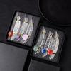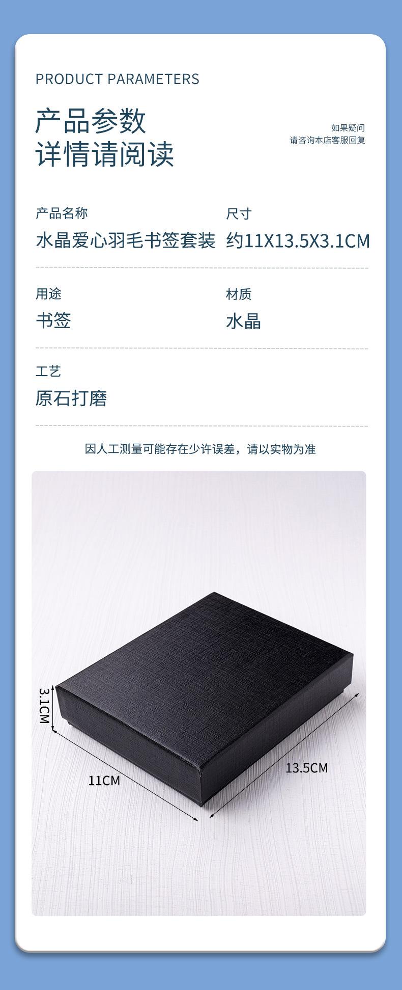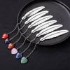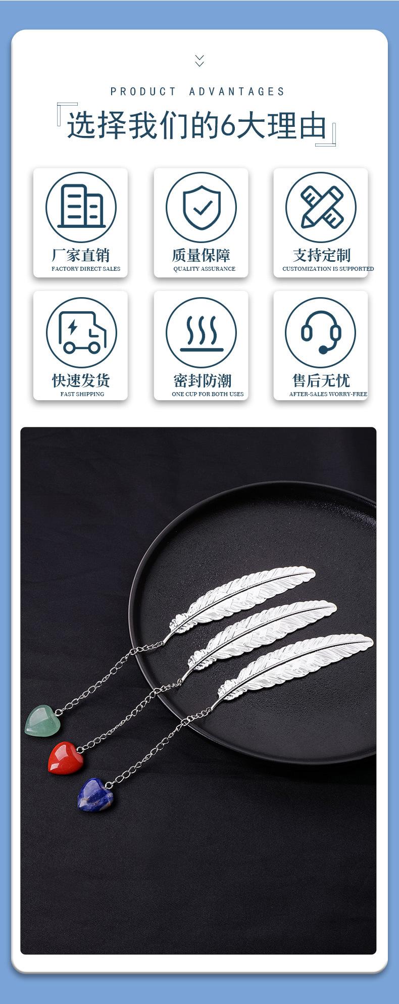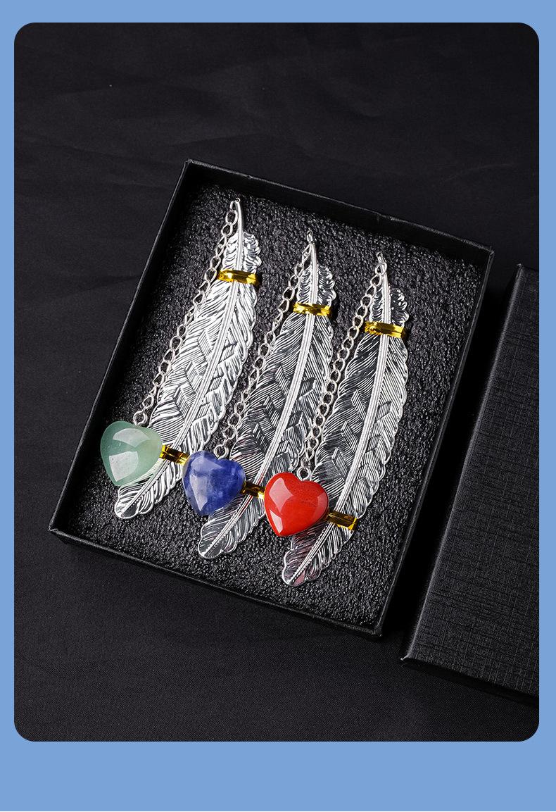 Marcapáginas de plumas de metal con forma de corazón de cristal natural, venta transfronteriza, ideal como regalo creativo para estudiantes, papelería, caja de regalo