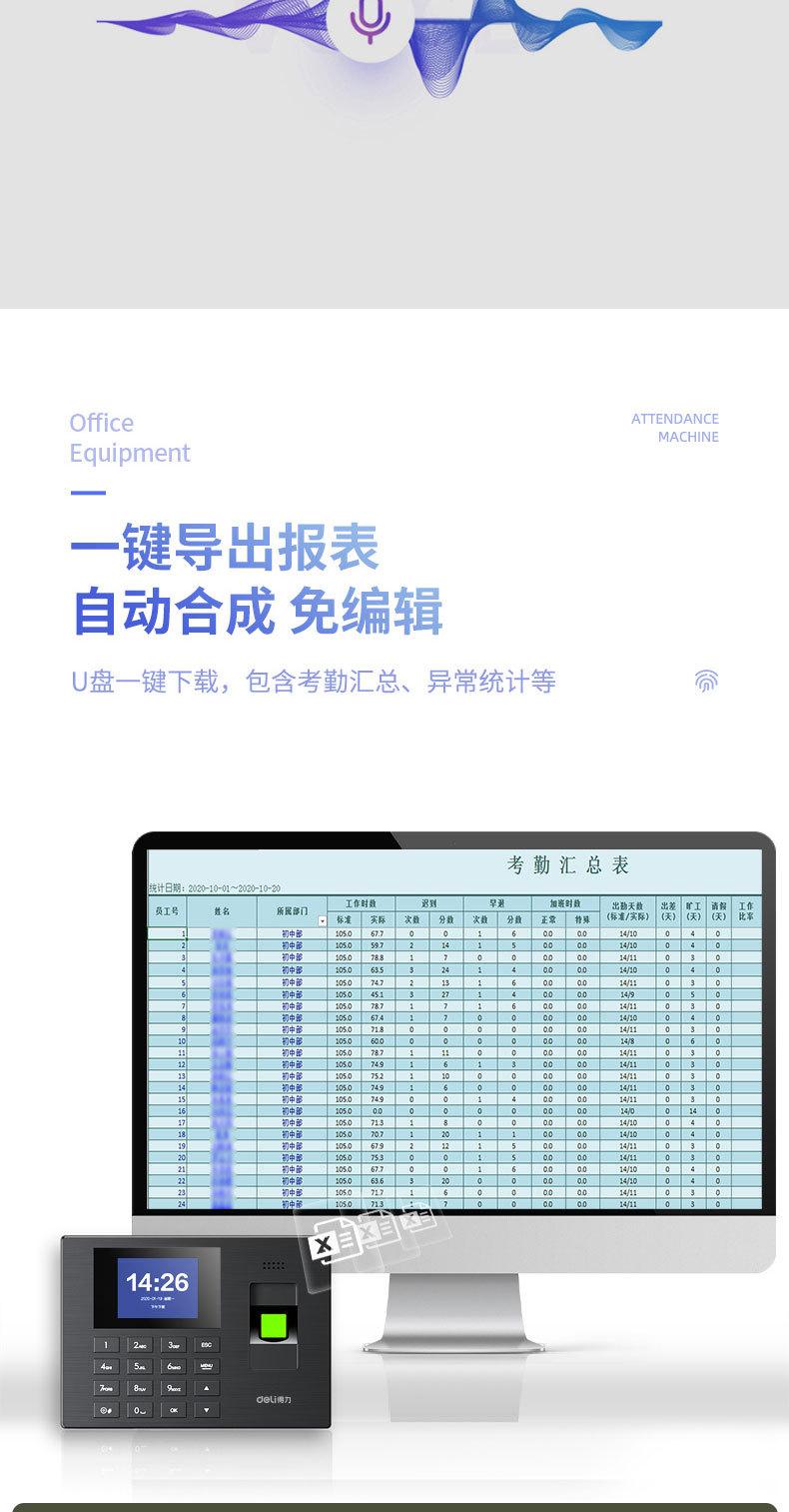 Máquina de asistencia Deli 3960S Máquina de tarjetas de trabajo Máquina de registro de identificación de huellas dactilares Instalación de software gratuita Registro de huellas dactilares