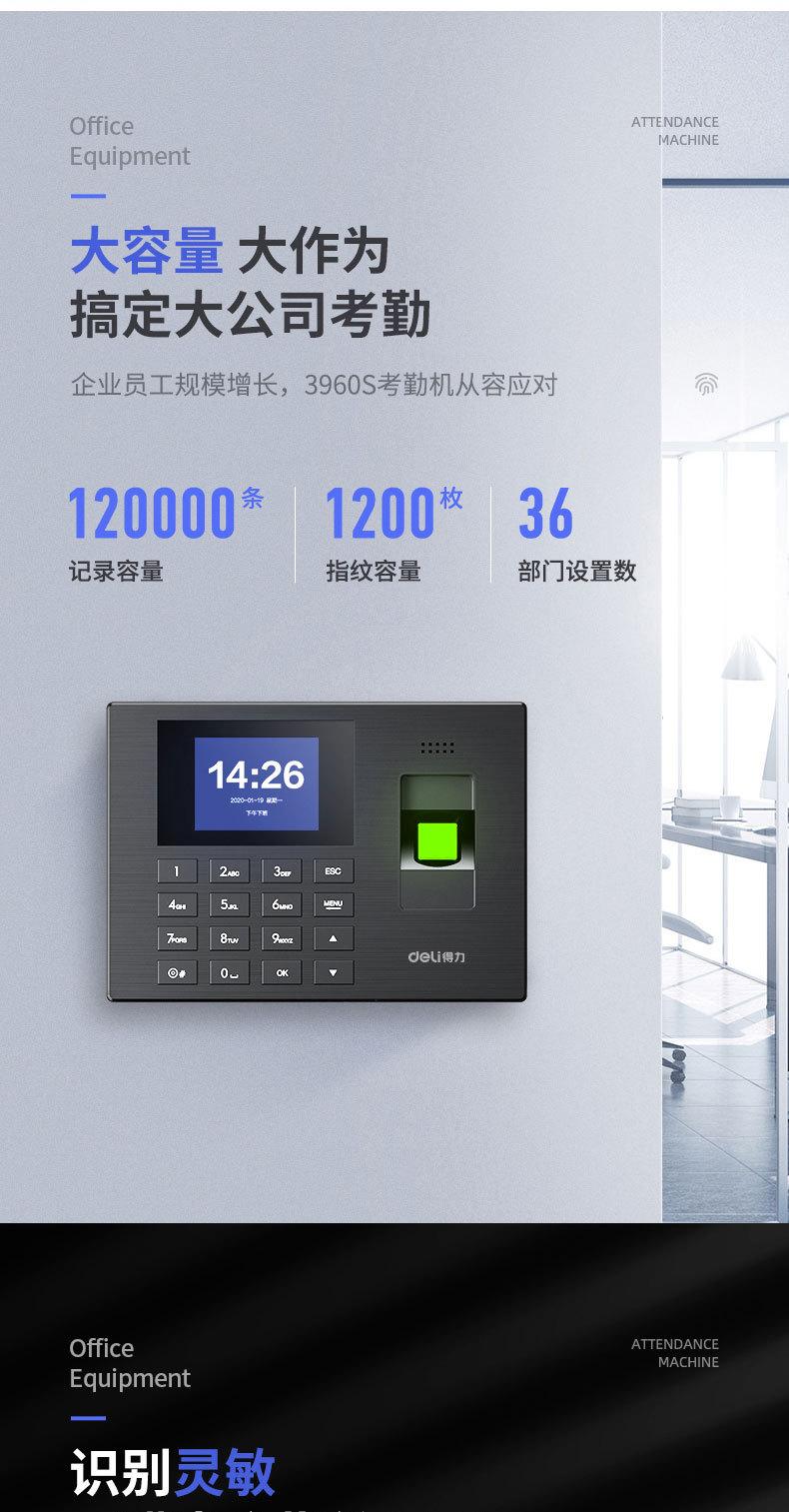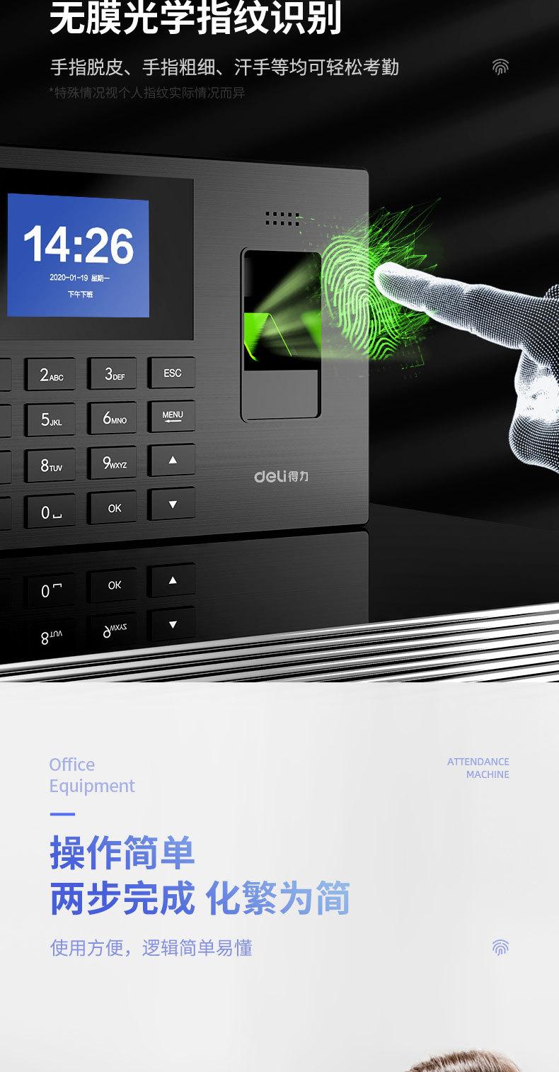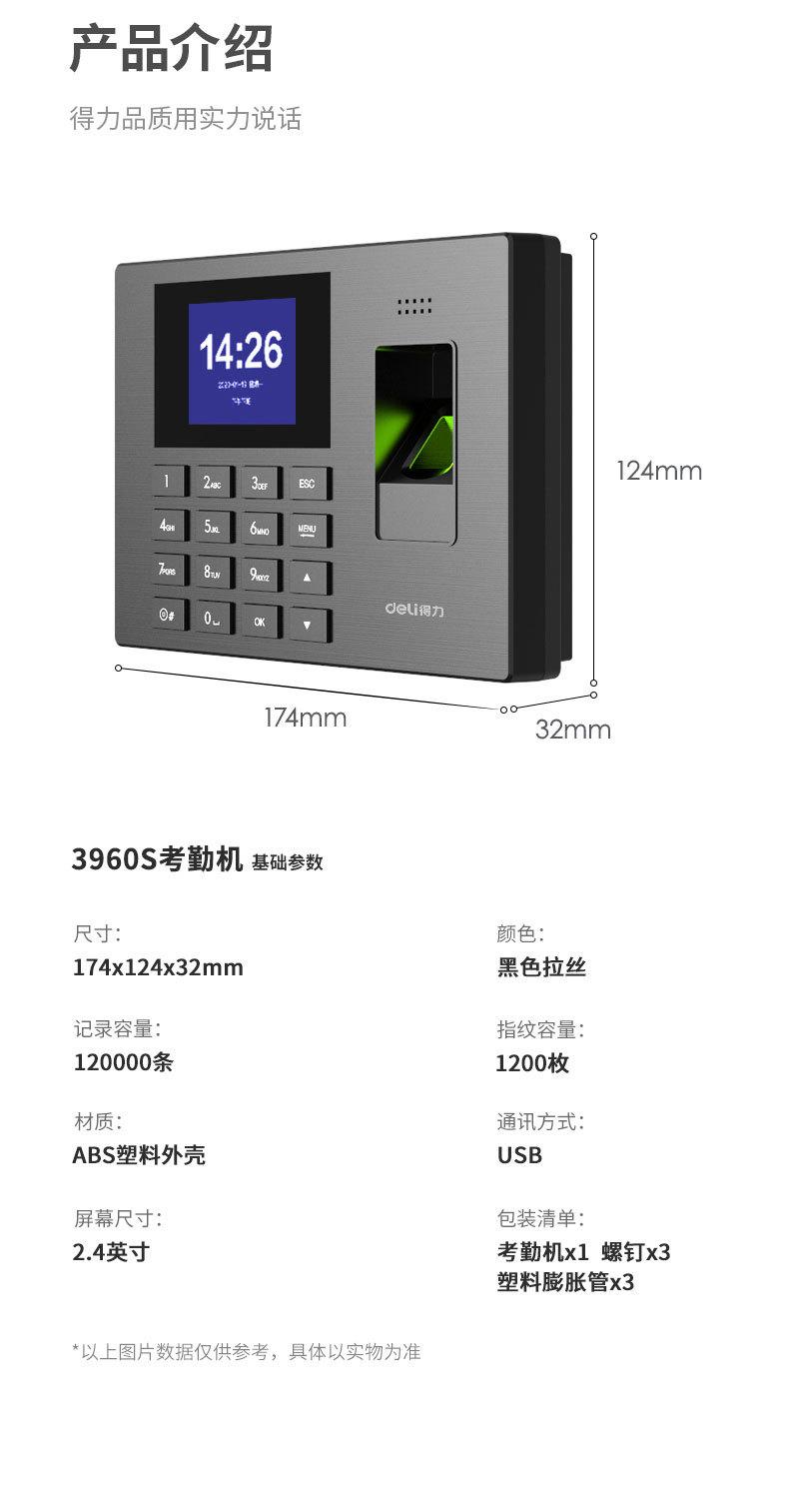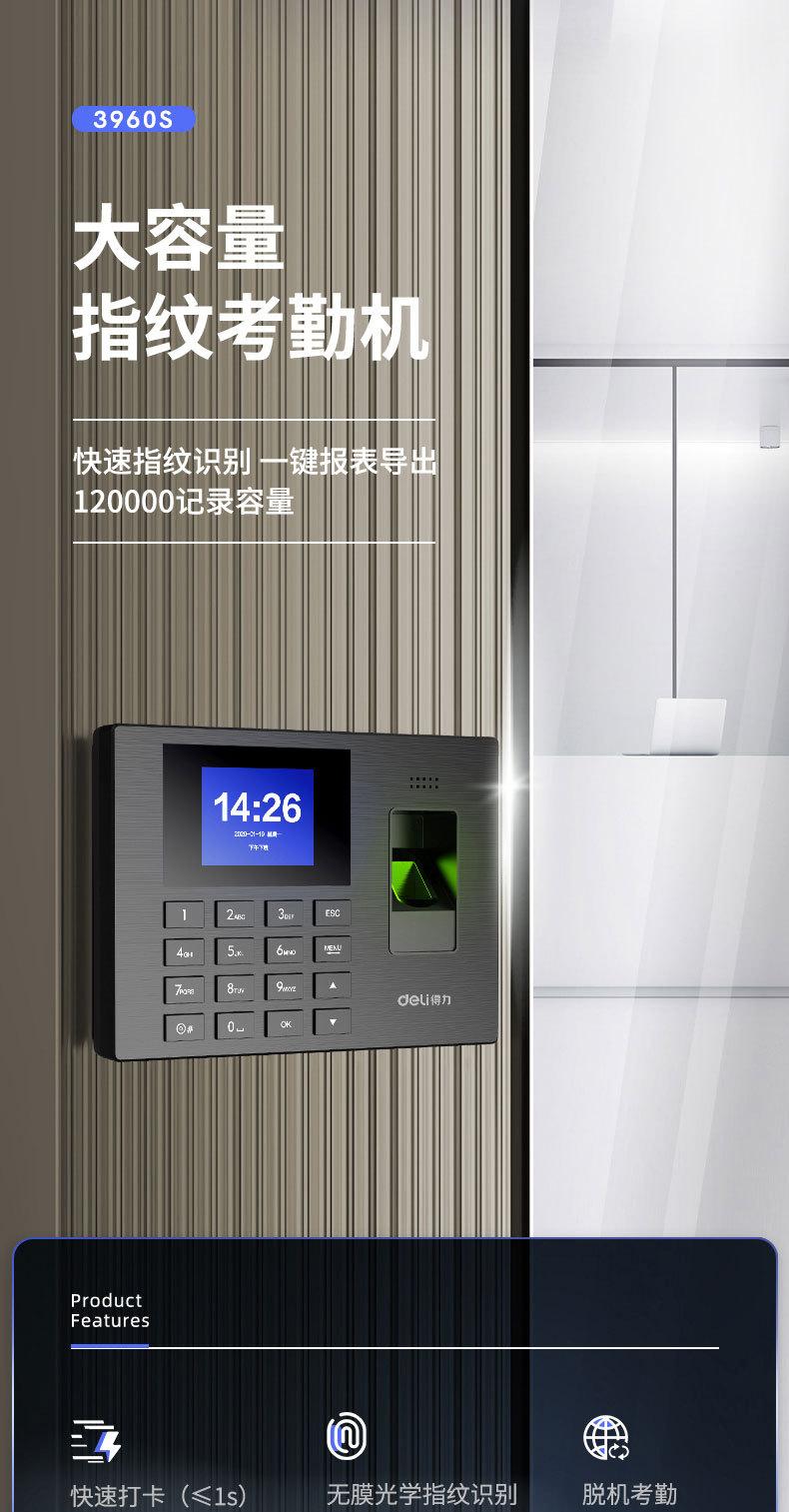Deli 3960S Fingerprint Attendance Machine (Black) (Taiwan)