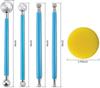 Paquete de herramientas: 24 tipos diferentes de herramientas de cerámica, incluidos 5 bolígrafos escritos a mano con cuentas redondas con mango de madera, 5 modeladores de color, 5 herramientas de arcilla de madera, 4 herramientas de punta de bolígrafo con cuentas redondas, 4 cerámicas de plástico y 1 esponja de cerámica