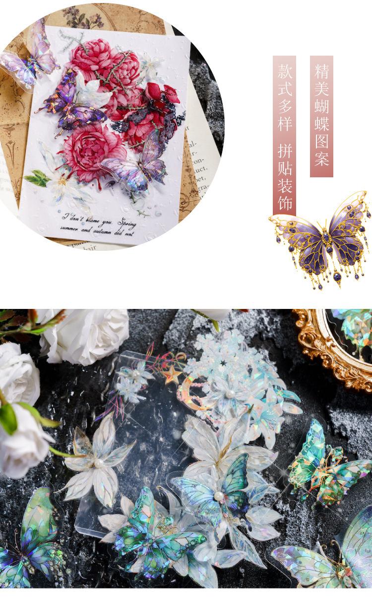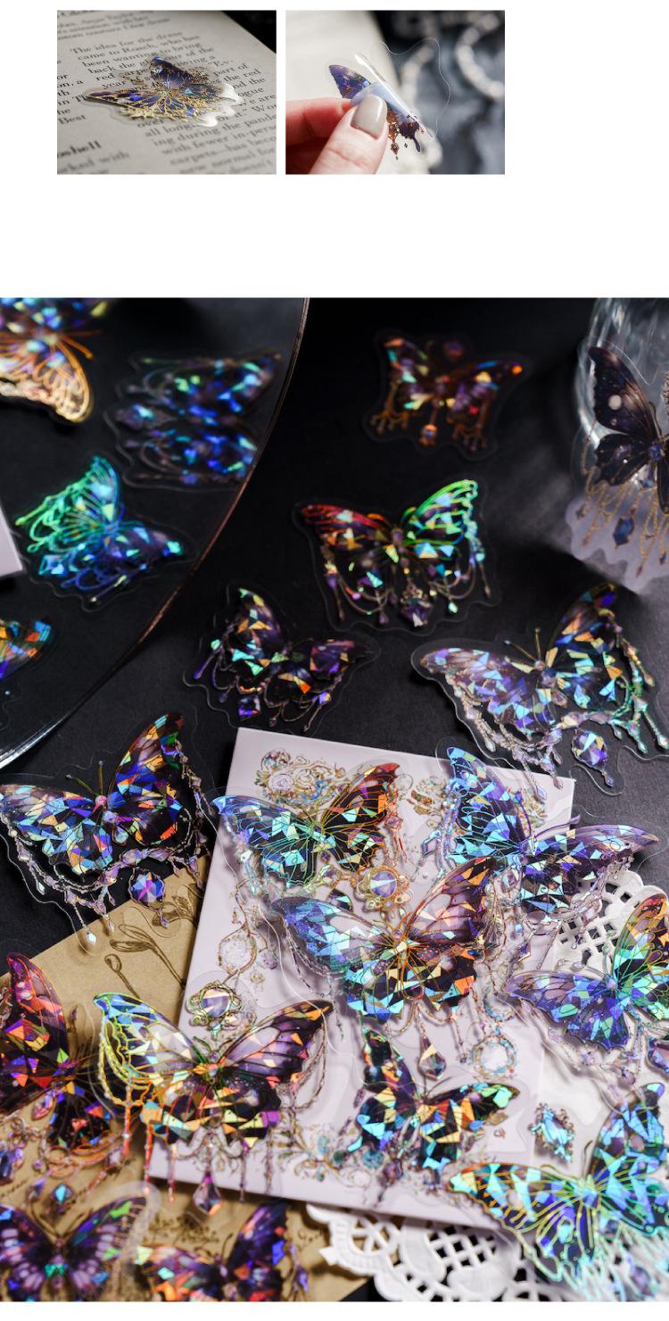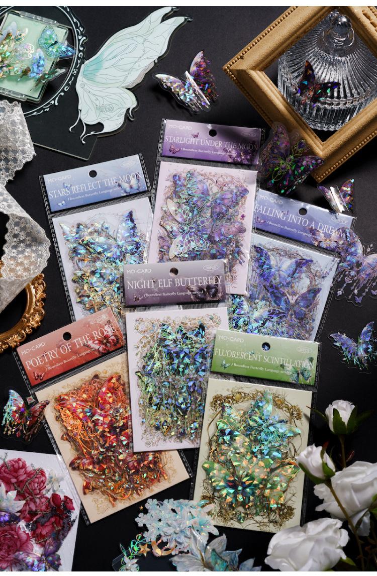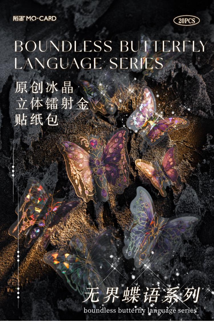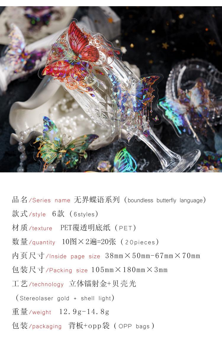 Paquete de pegatinas PET de la serie Butterfly de Mo Mo Wujie, material de decoración de cuentas de mano con láser tridimensional, 20 piezas en 6 tipos