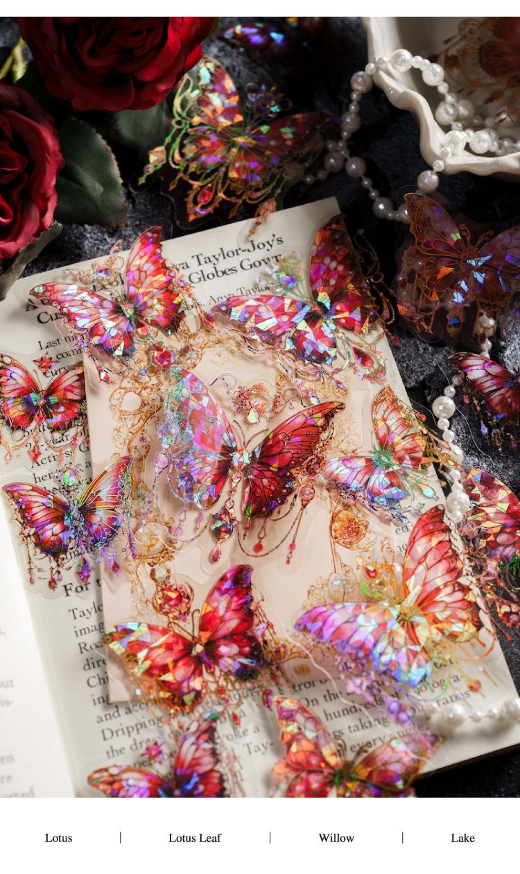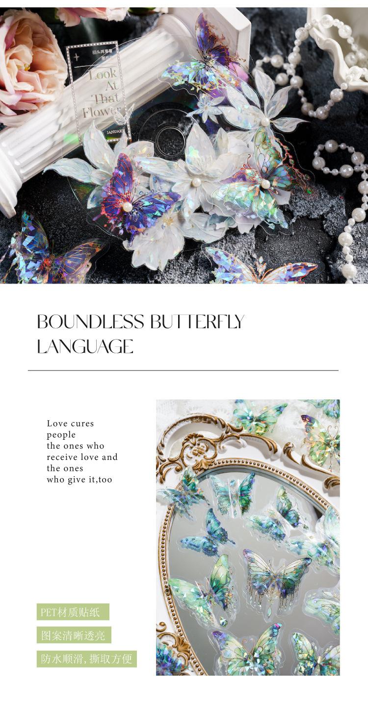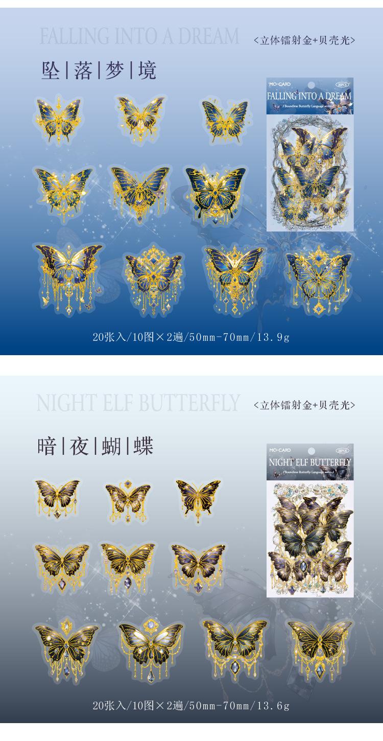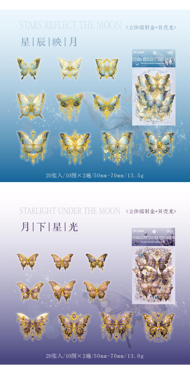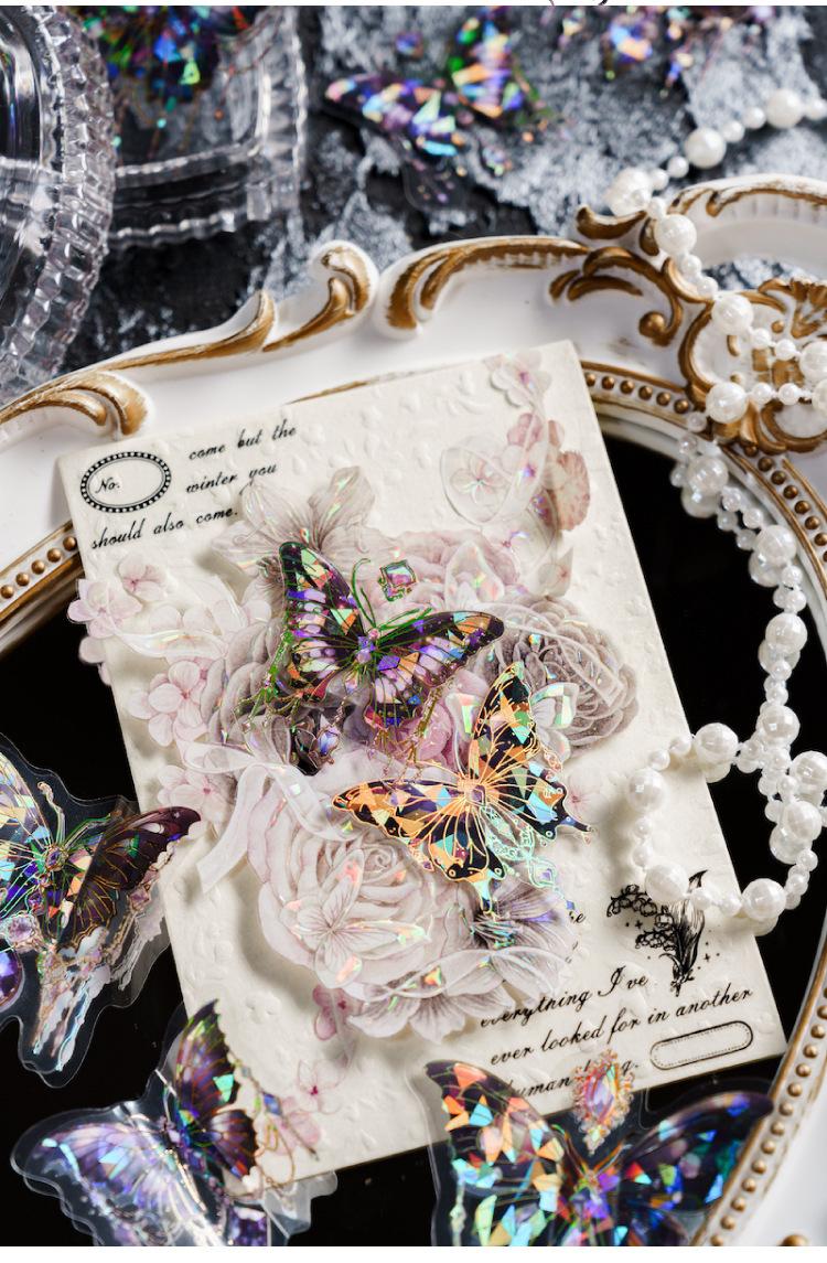 Paquete de pegatinas PET de la serie Butterfly de Mo Mo Wujie, material de decoración de cuentas de mano con láser tridimensional, 20 piezas en 6 tipos