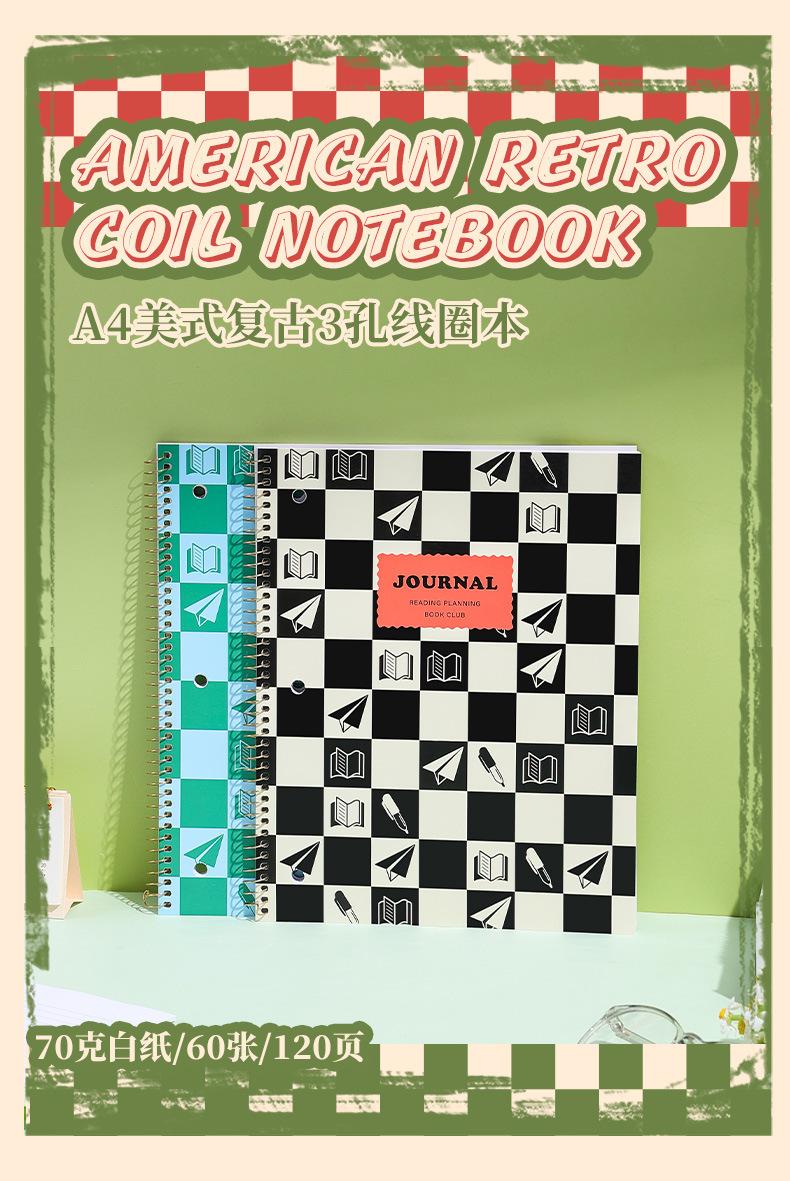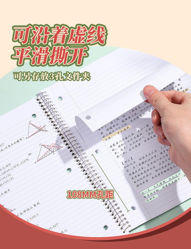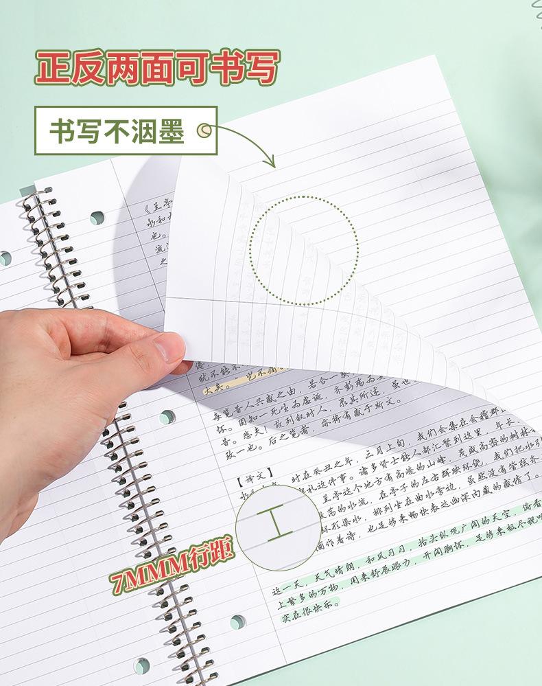 Cuaderno de espiral americano Deli Jia, cuaderno de hojas sueltas de 3 agujeros, cuaderno de líneas horizontales A4.