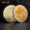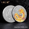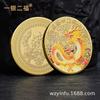 Moneda de oro conmemorativa transfronteriza del Año del Dragón Chino, medalla conmemorativa con impresión a color de metal en relieve, moneda de oro y plata con el auspicioso símbolo del dragón Fu del zodíaco.