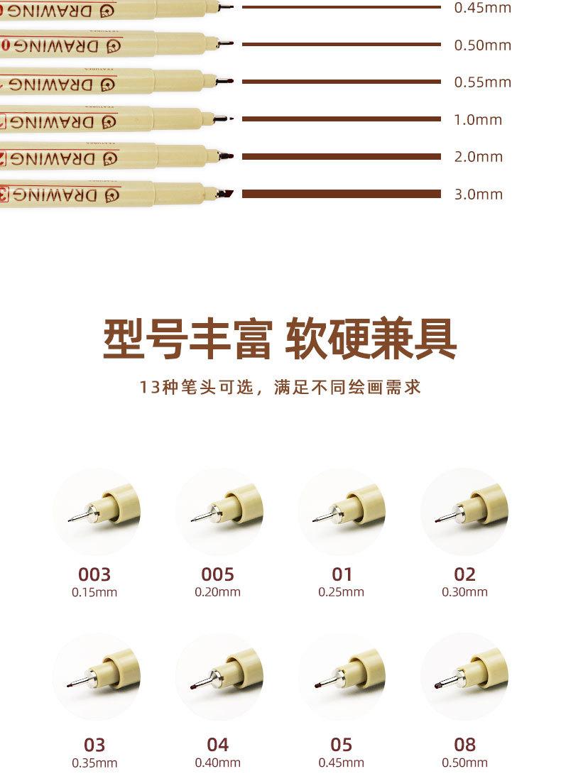 Pluma de Dibujo Marrón Estudiante Impermeable Pluma de Gancho Estudiante de Arte Diseño de Animación Especial Set de Marcadores de Trazo Cómico