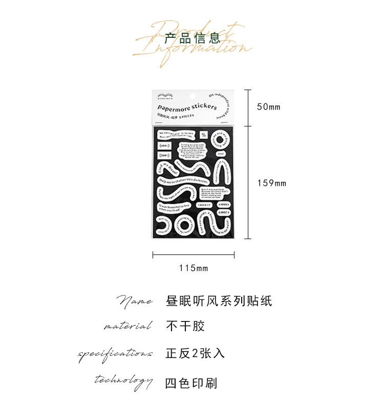 PaperMore Sticker Dormir de día Escuchar el viento Material para cuenta de mano Inglés DIY Sticker de texto 2